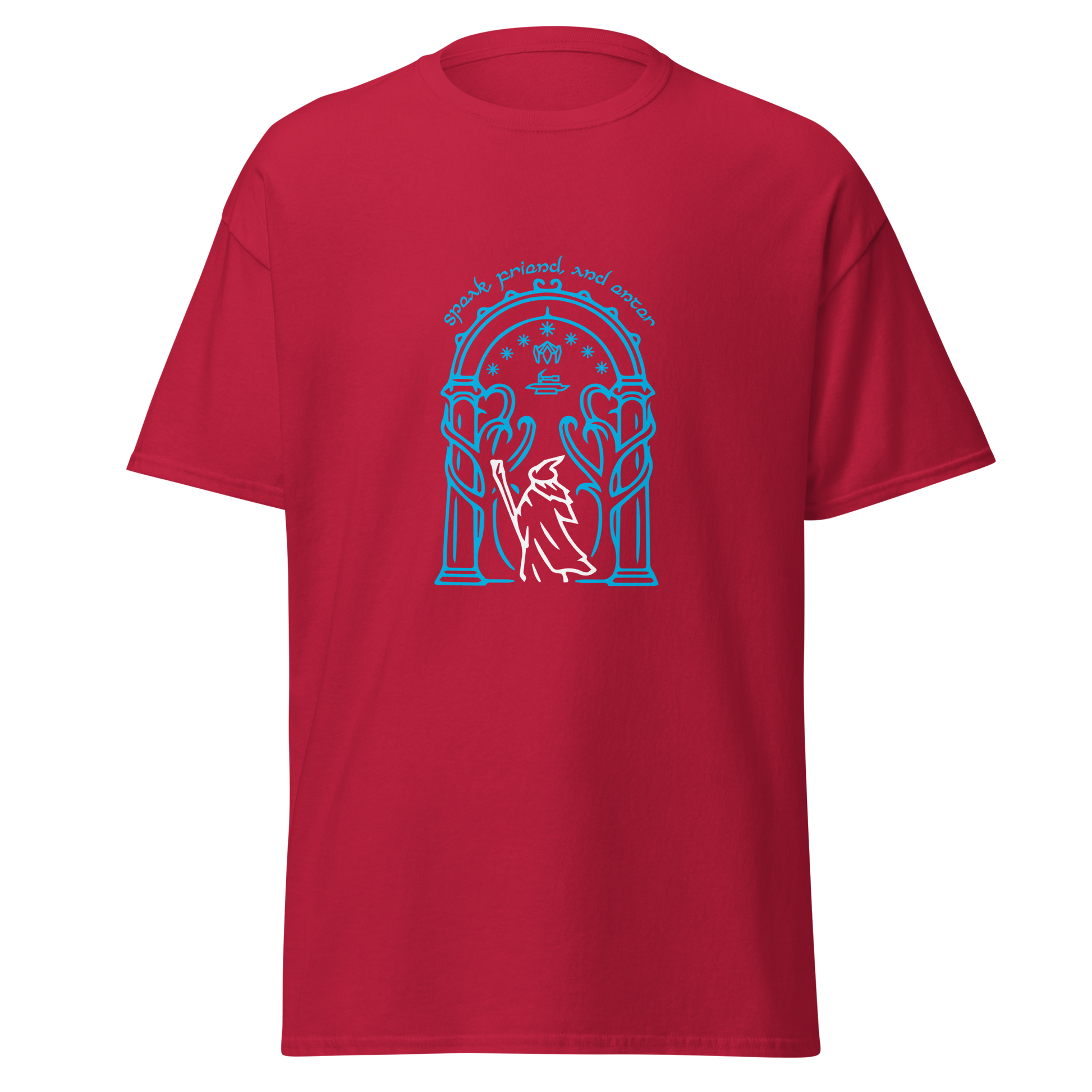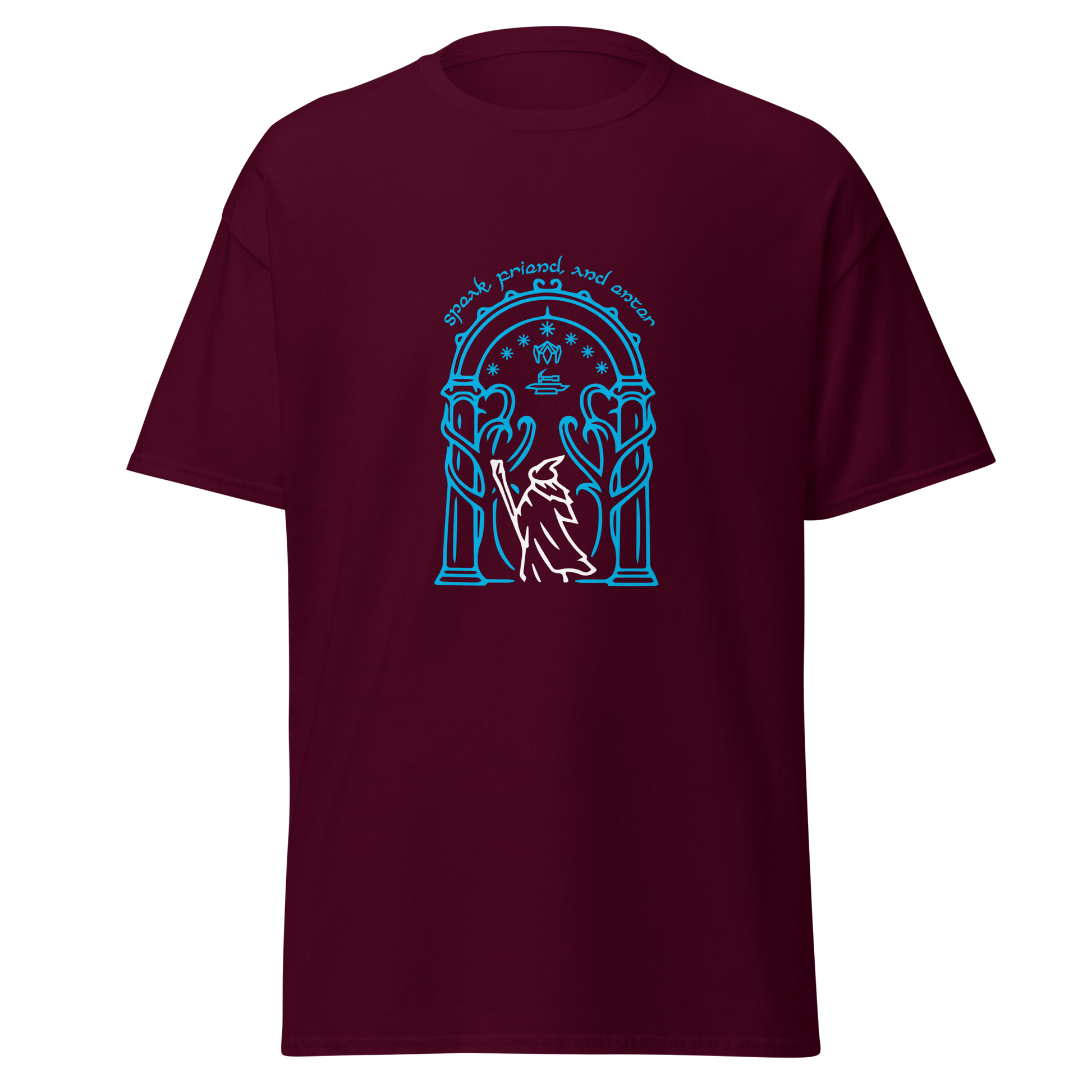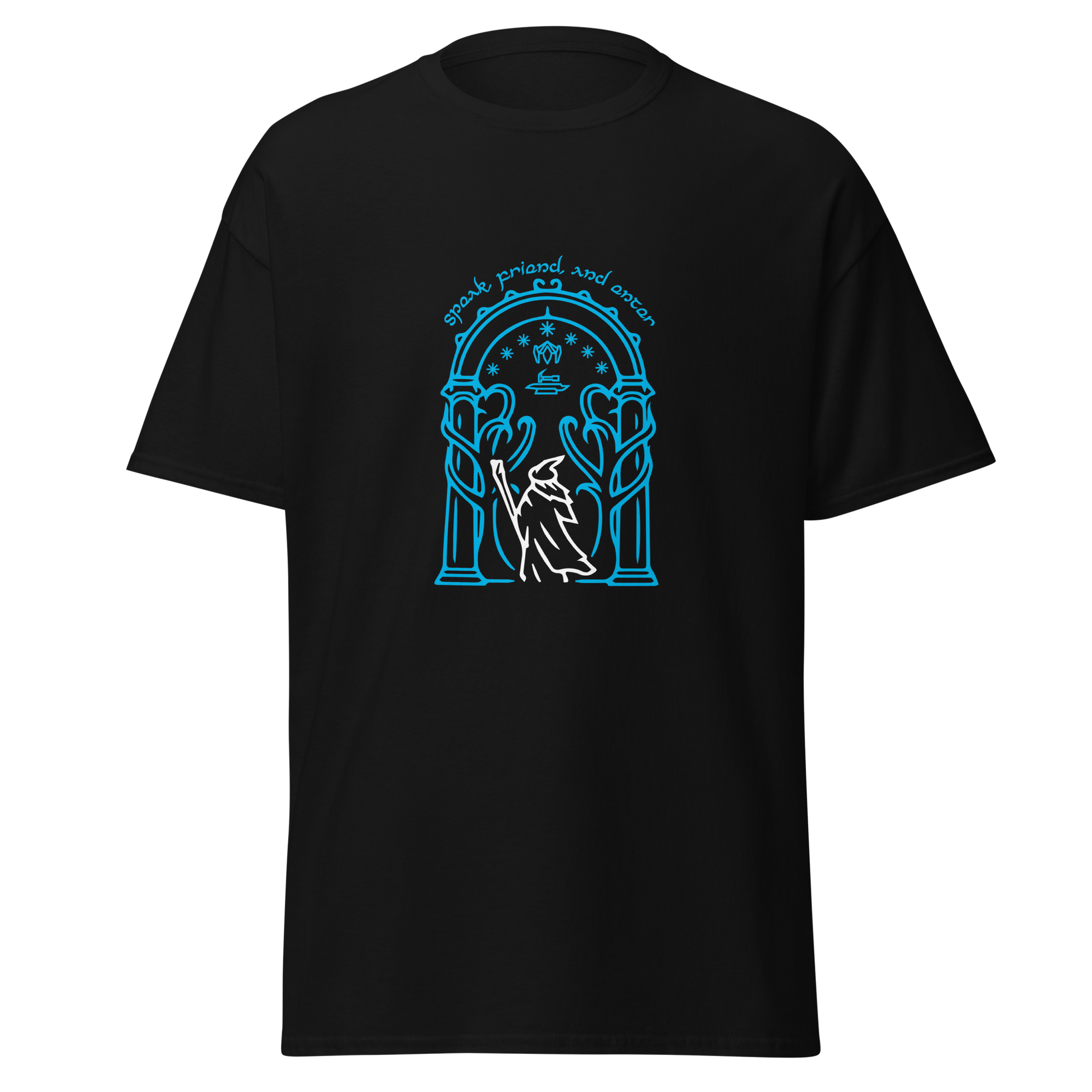 Discover the beauty of Durin's realm with our Doors of Durin T-Shirt. This captivating design captures the essence of the fabled doors. As a true fan of The Lord of the Rings, you can wear your passion proudly and make a statement wherever you go. Crafted for both style and comfort, our t-shirt is a must-have addition to your collection of fantasy-inspired apparel.