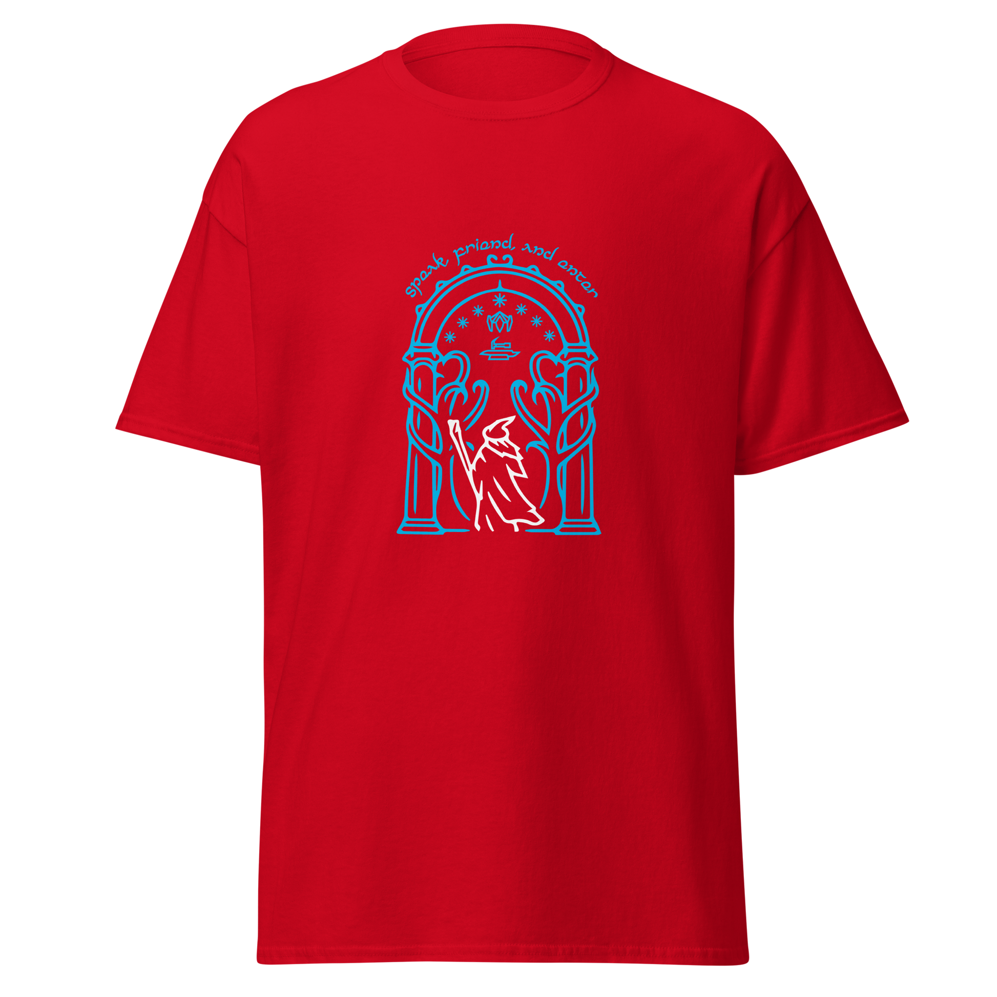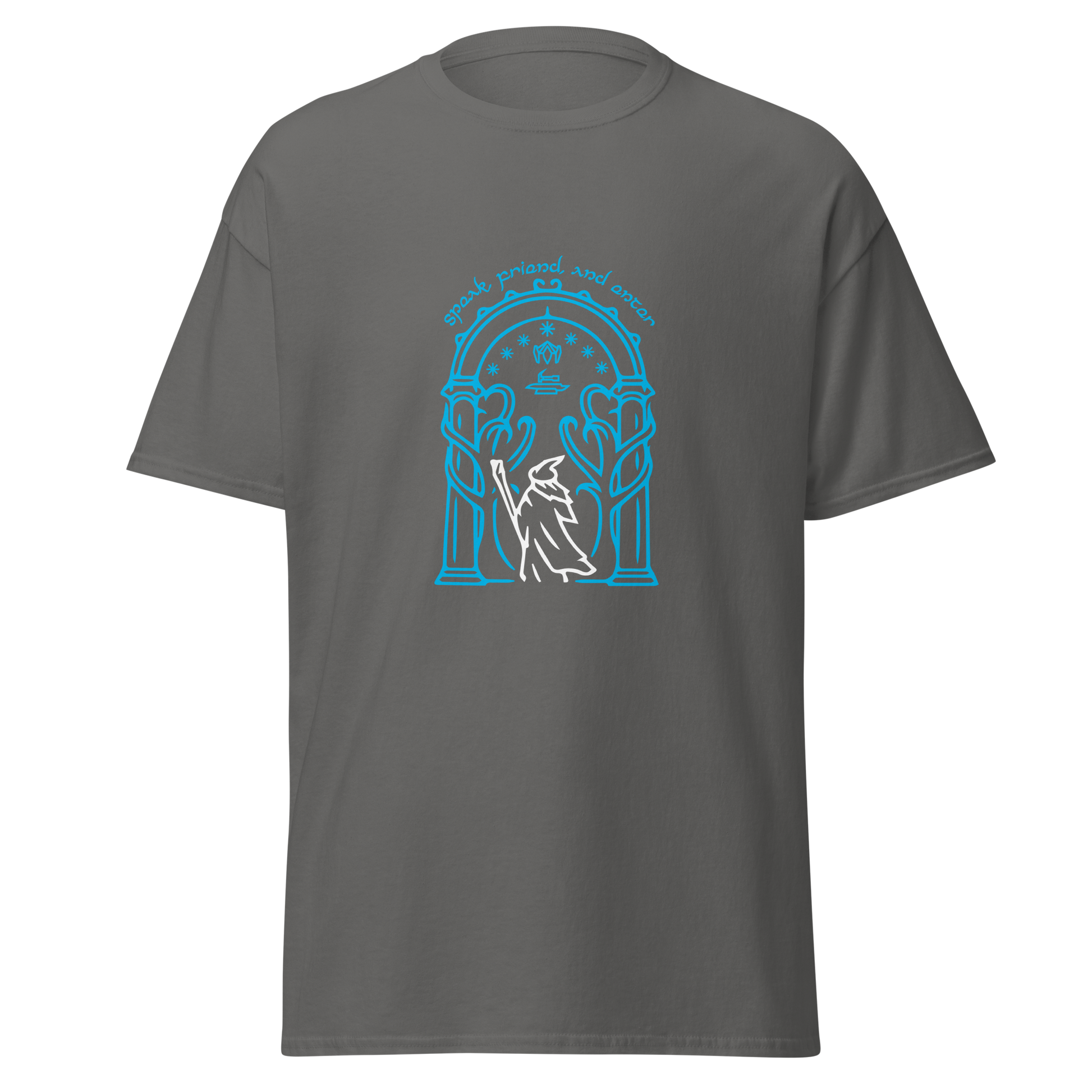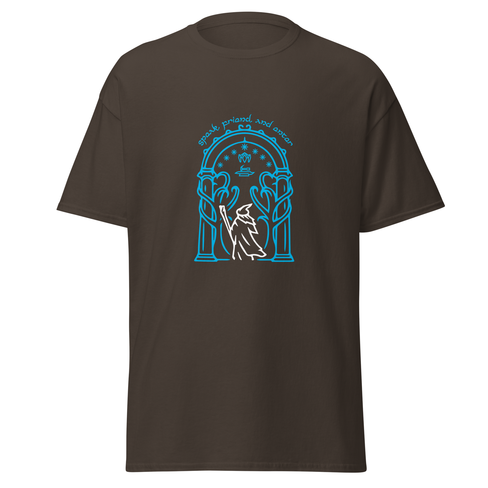 Discover the beauty of Durin's realm with our Doors of Durin T-Shirt. This captivating design captures the essence of the fabled doors. As a true fan of The Lord of the Rings, you can wear your passion proudly and make a statement wherever you go. Crafted for both style and comfort, our t-shirt is a must-have addition to your collection of fantasy-inspired apparel.