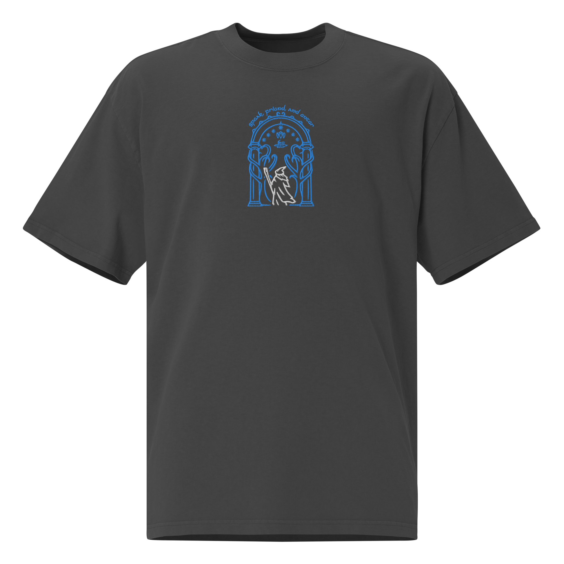 Step into the realm of Moria with the "Doors Of Durin" Oversized Faded T-Shirt. Perfect for Tolkien enthusiasts and style aficionados alike, this t-shirt combines the mystique of Middle-earth with contemporary fashion. The iconic Doors of Durin design invites you to explore the ancient dwarven kingdom, all while enjoying the modern comfort of an oversized, faded tee.