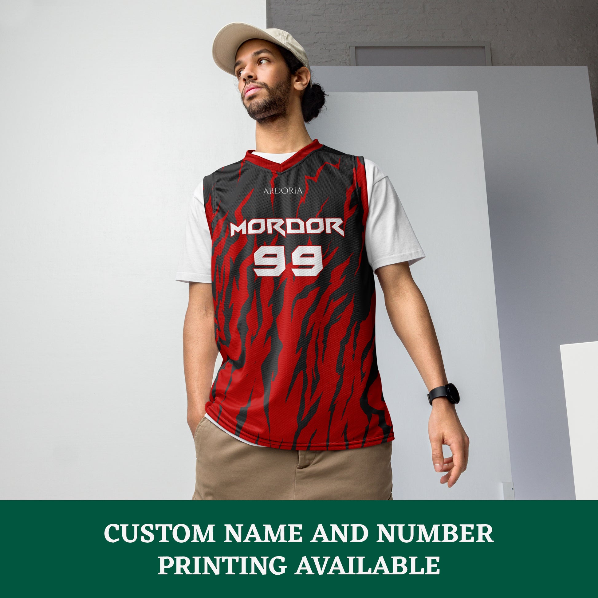 Channel the fiery power of the dark lands with this Mordor-inspired basketball jersey. Featuring a bold, battle-worn design and powerful dark tones, this jersey blends streetwear with shadowy fantasy vibes. Made for fans who aren’t afraid to rep the darker side of Middle-earth.
