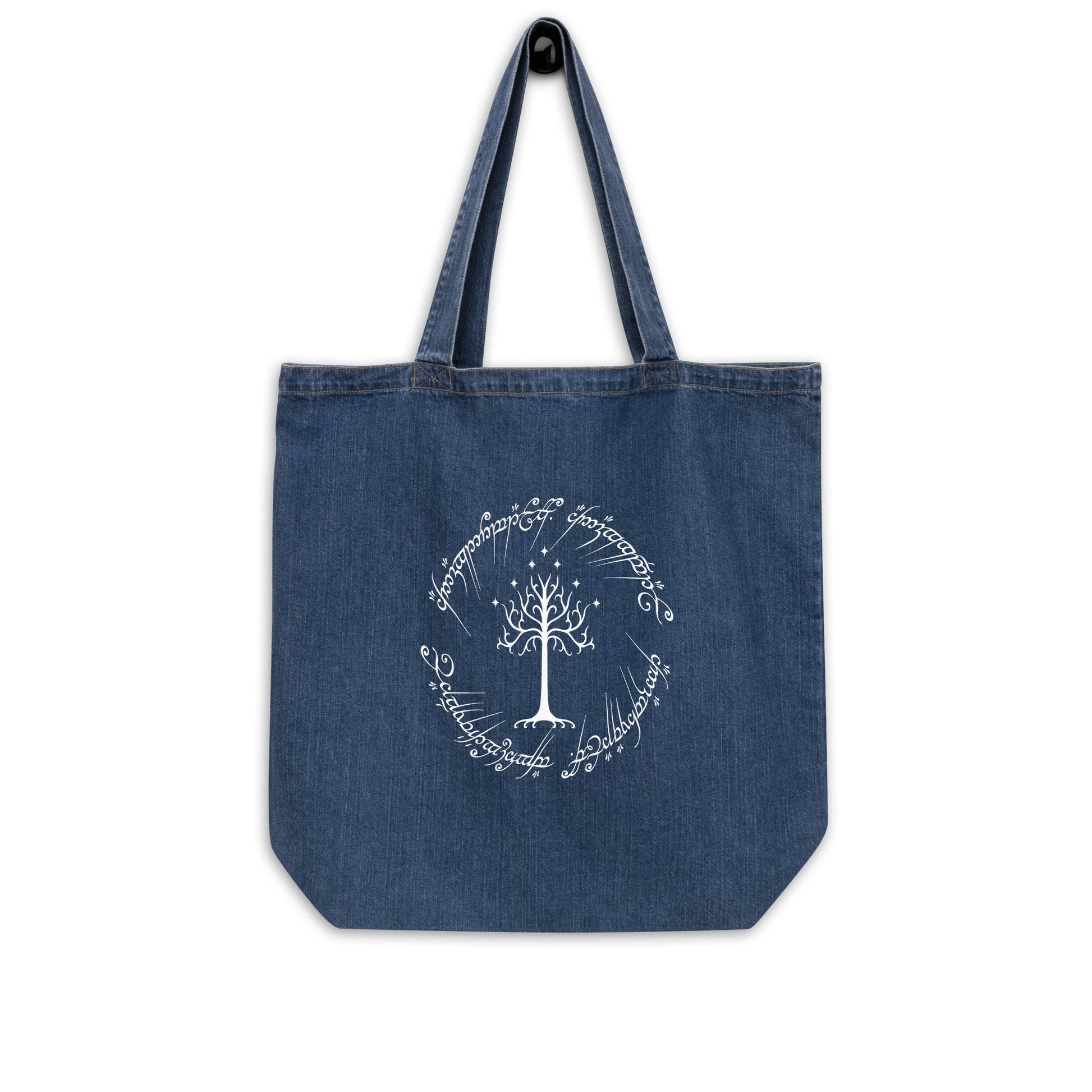Lord Of The Rings Tree Of Gondor and One Ring Inscription Eco Tote Bag (White Edition)