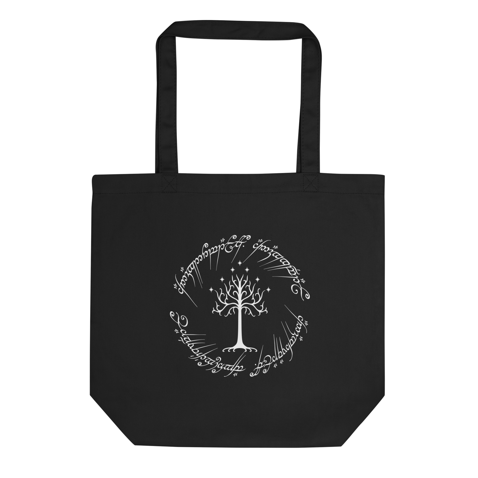 Lord Of The Rings Tree Of Gondor and One Ring Inscription Eco Tote Bag (White Edition)