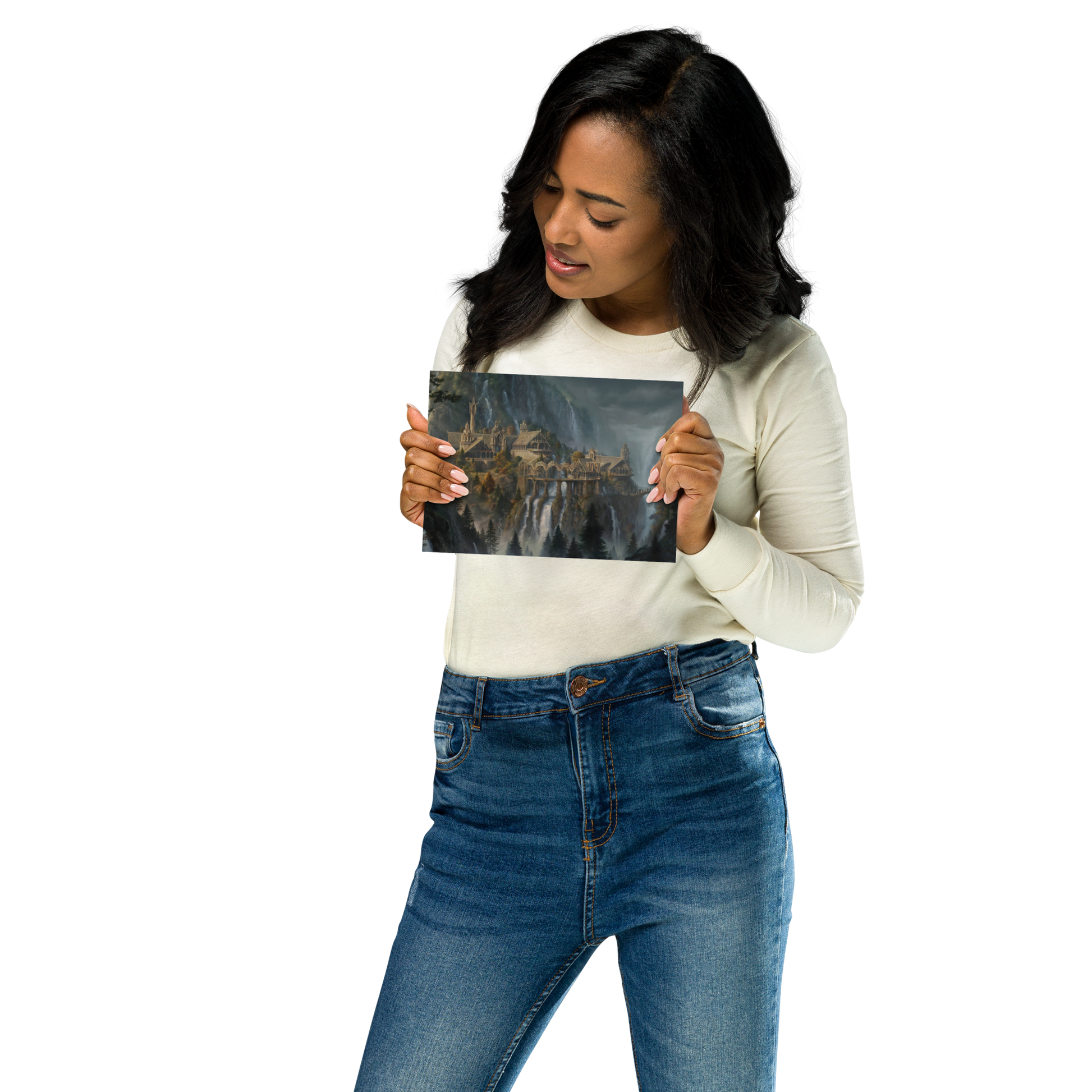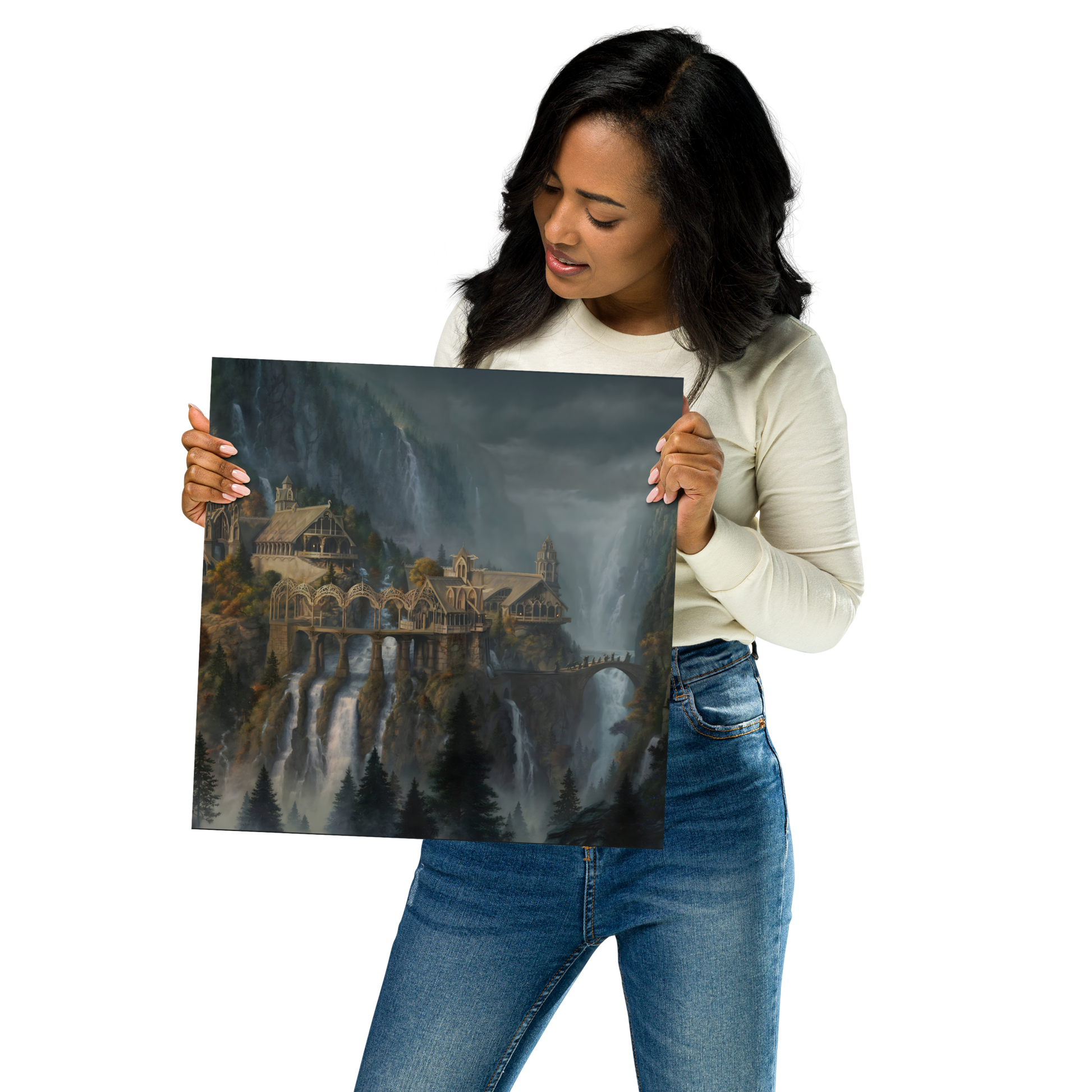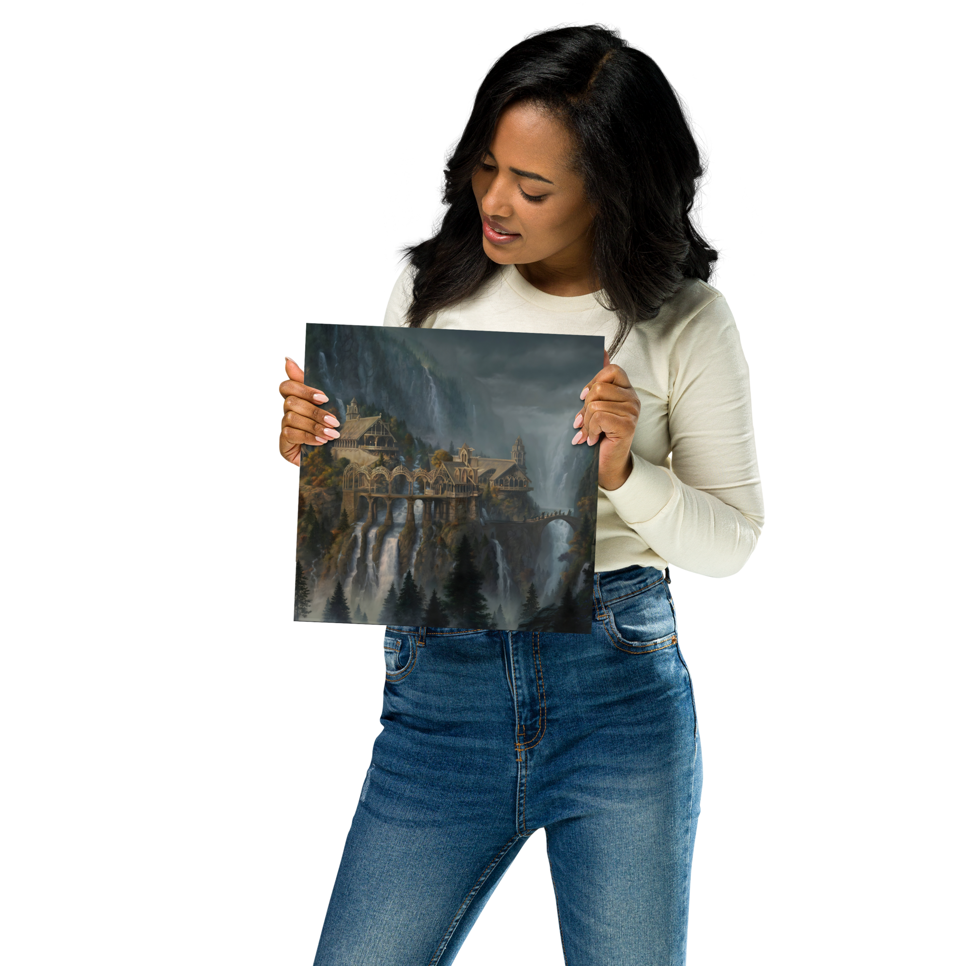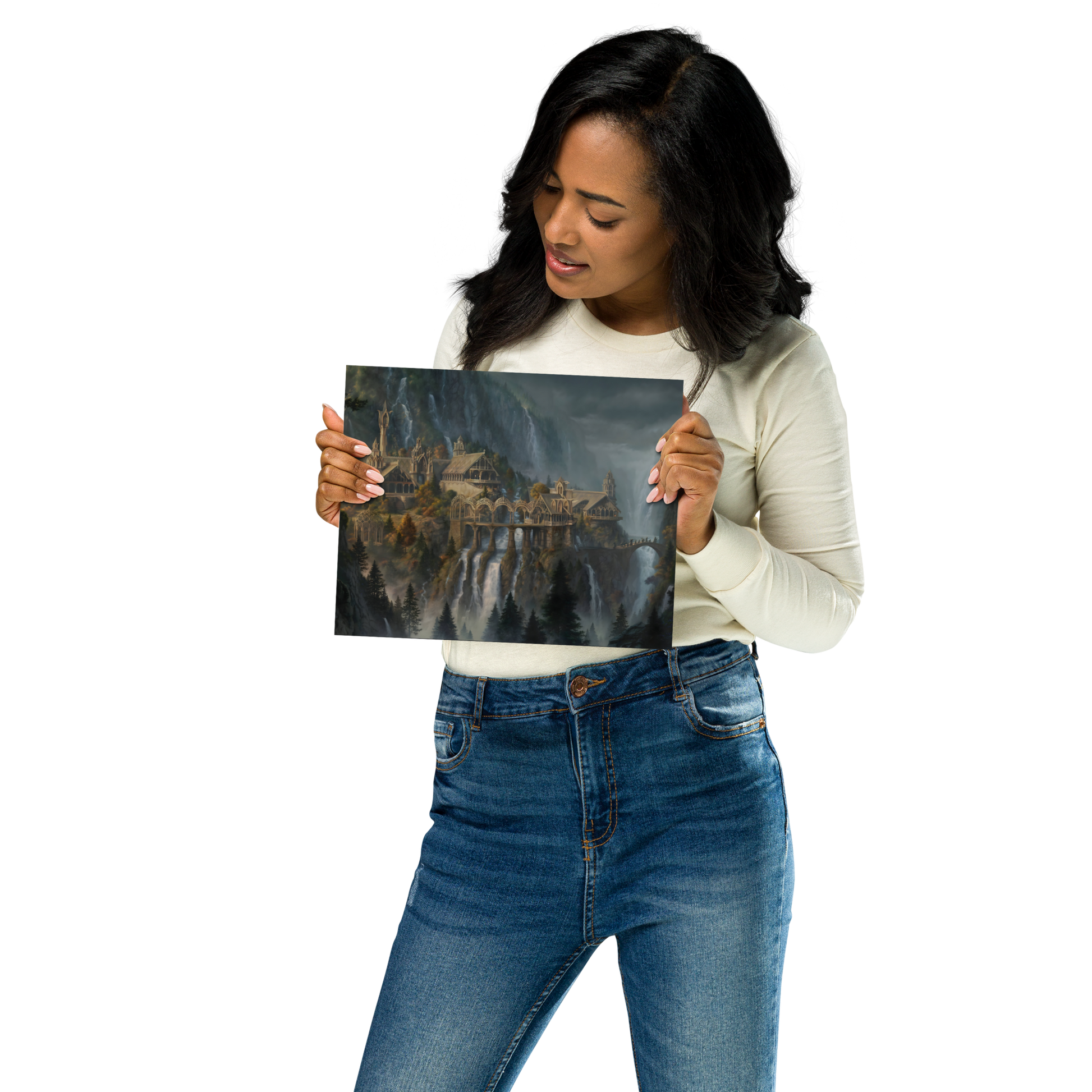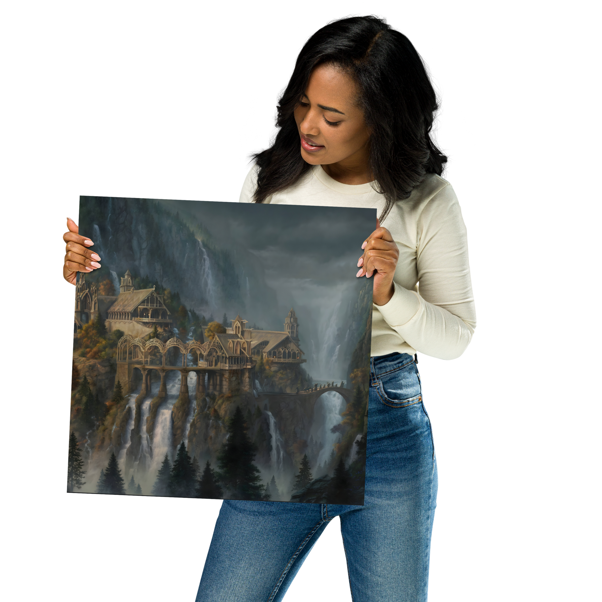 Step into the enchanting realm of Middle-earth with our Rivendell Poster, a stunning homage to one of the most iconic locations from J.R.R. Tolkien's masterpieces. Rivendell, the hidden refuge of the Elves, is beautifully depicted in intricate detail, capturing the ethereal beauty and timeless allure of this mystical place.