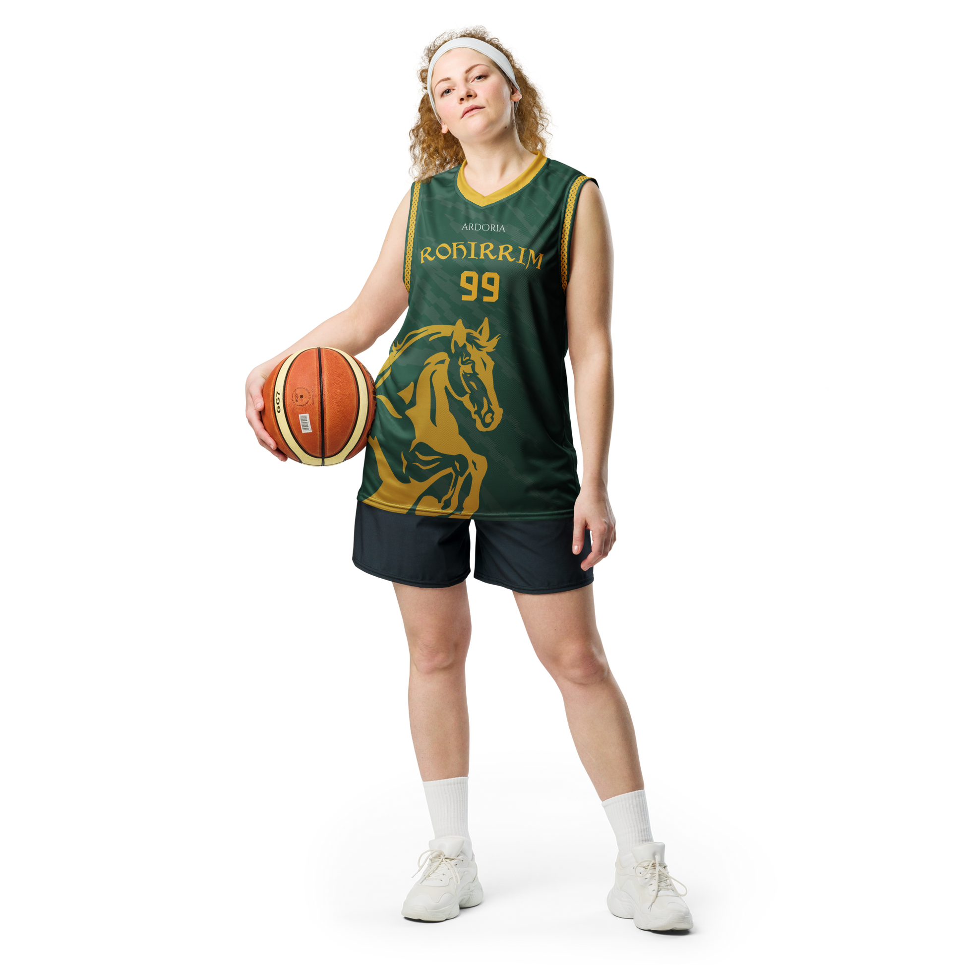 Celebrate the spirit of the Riddermark with this Rohan-inspired basketball jersey. A stylish nod to the land of the horse-lords, perfect for fans of Middle-earth.