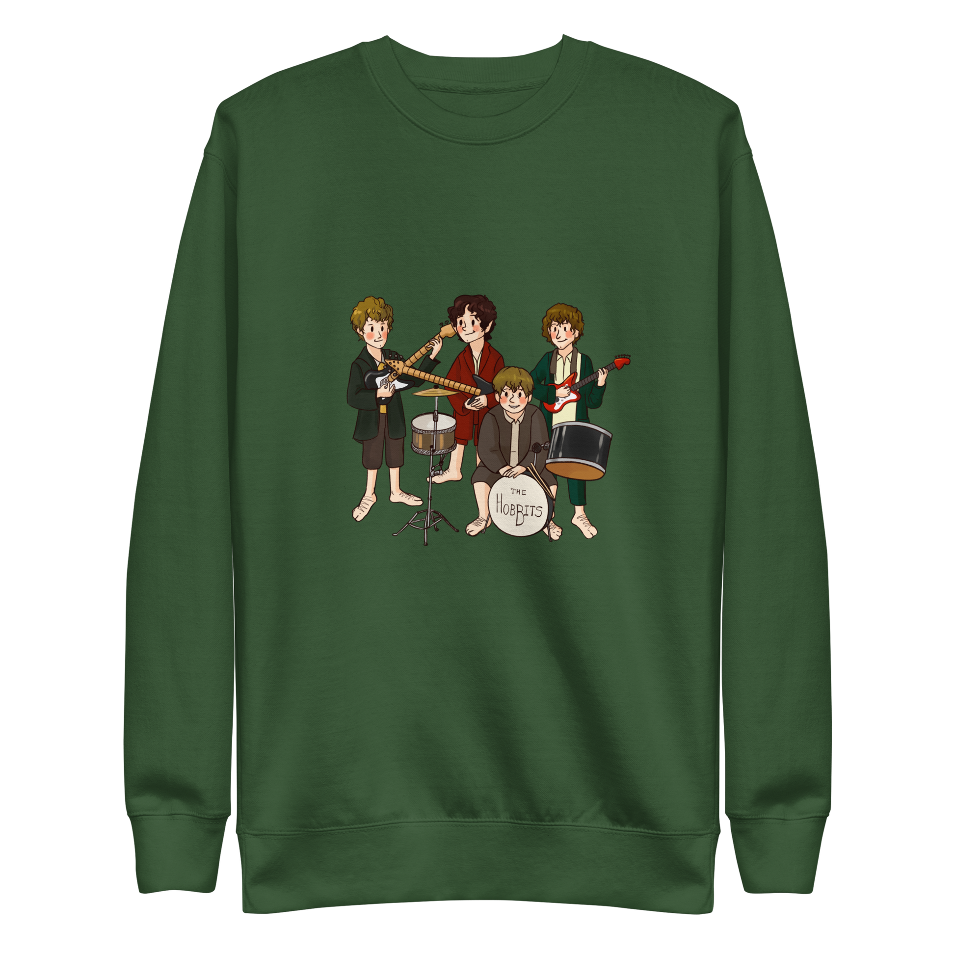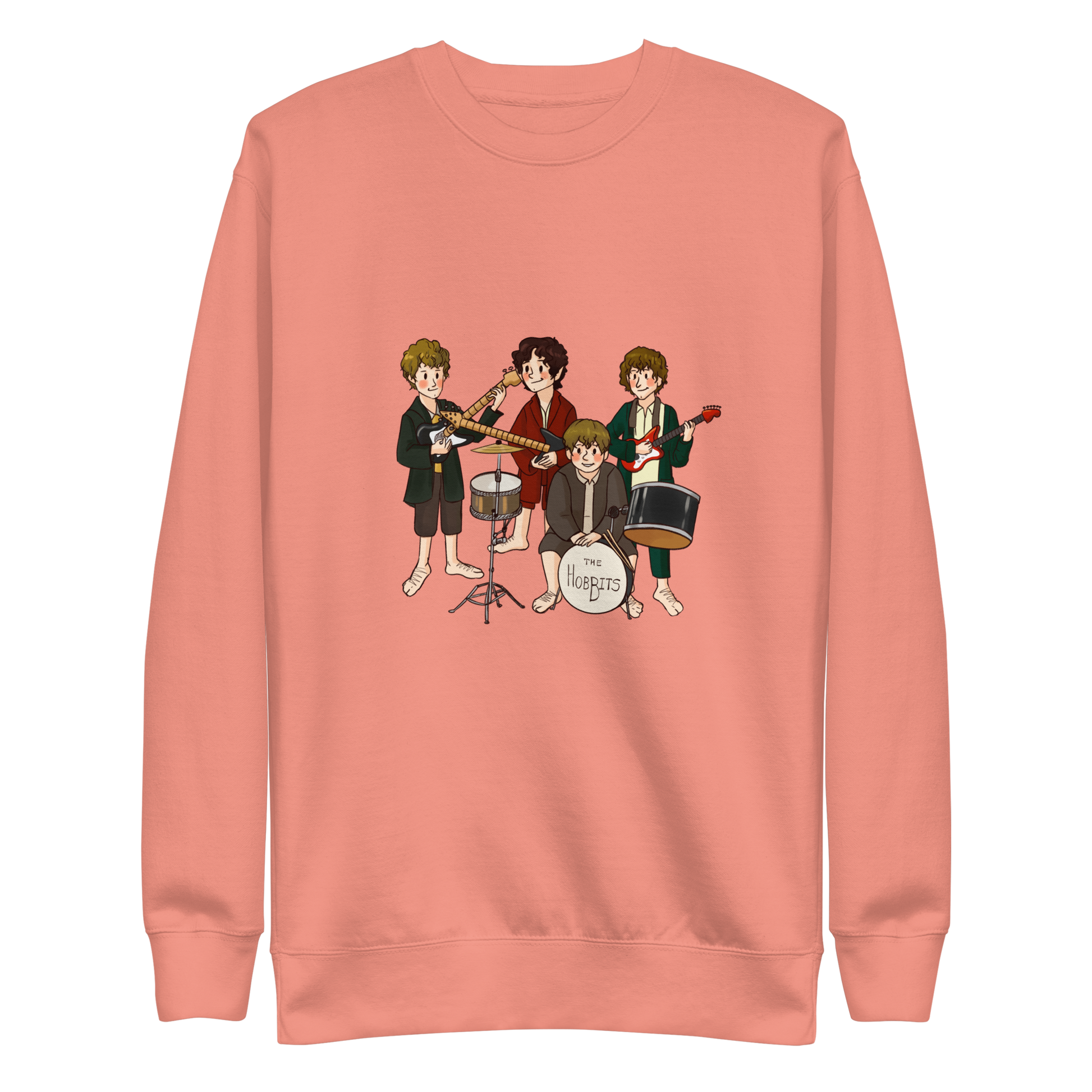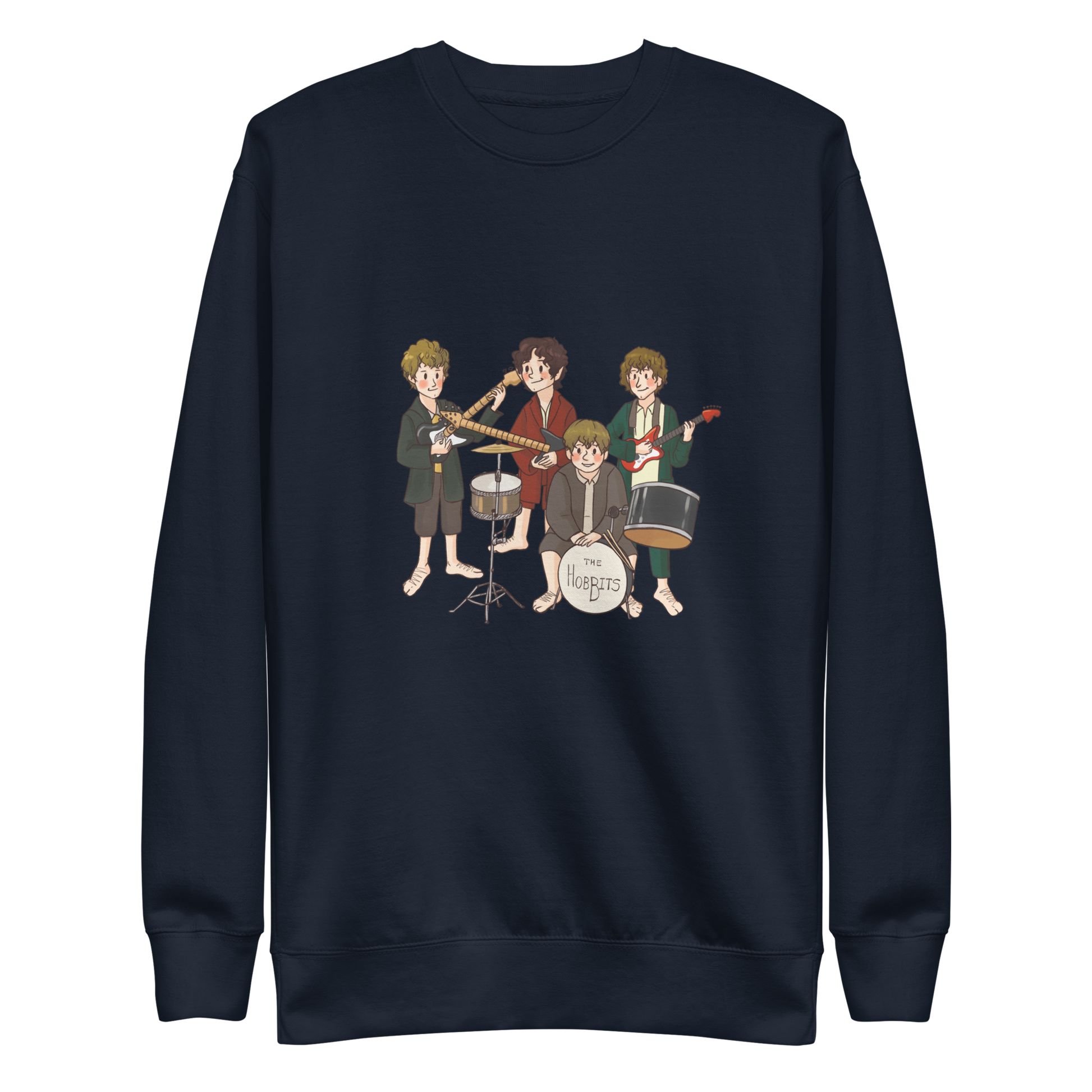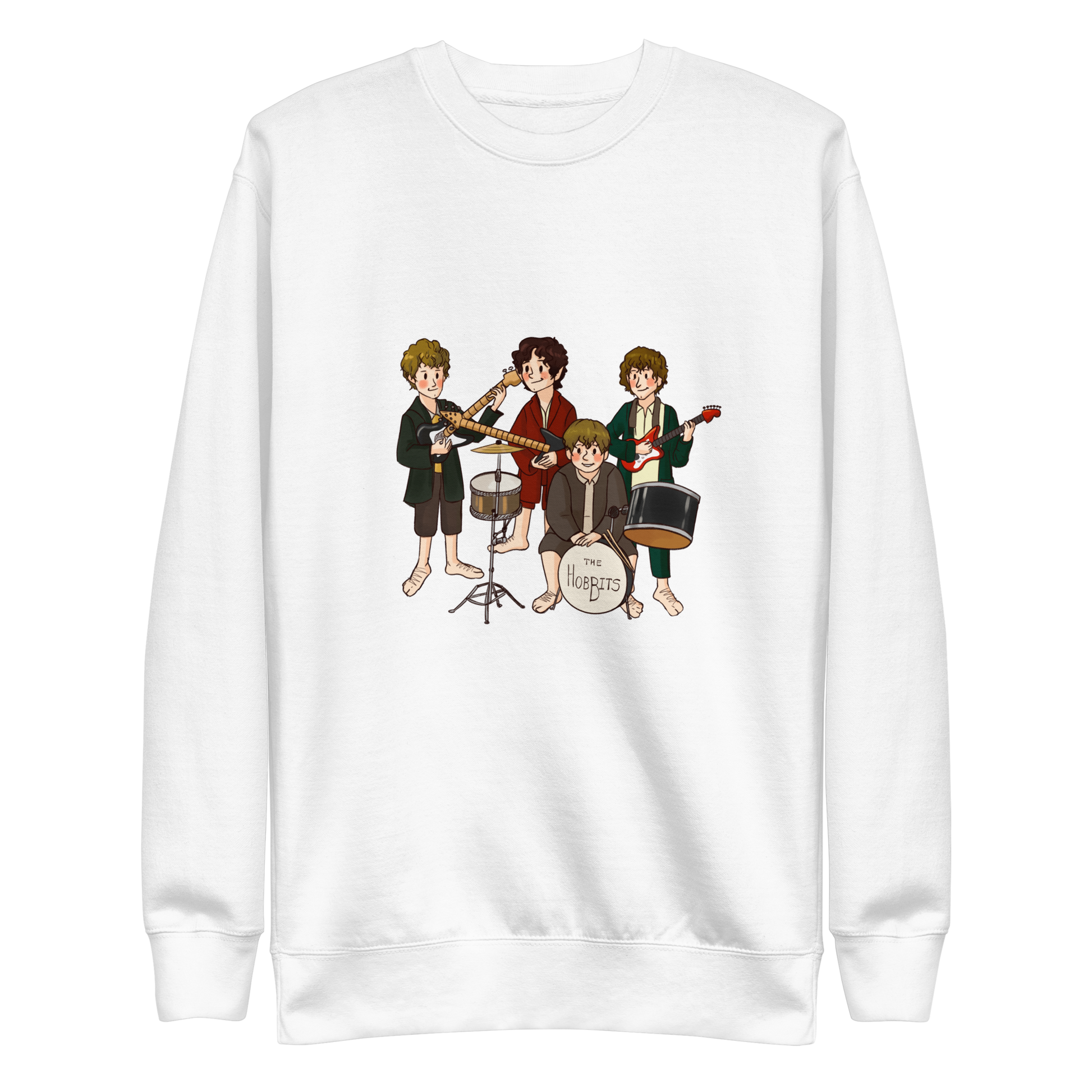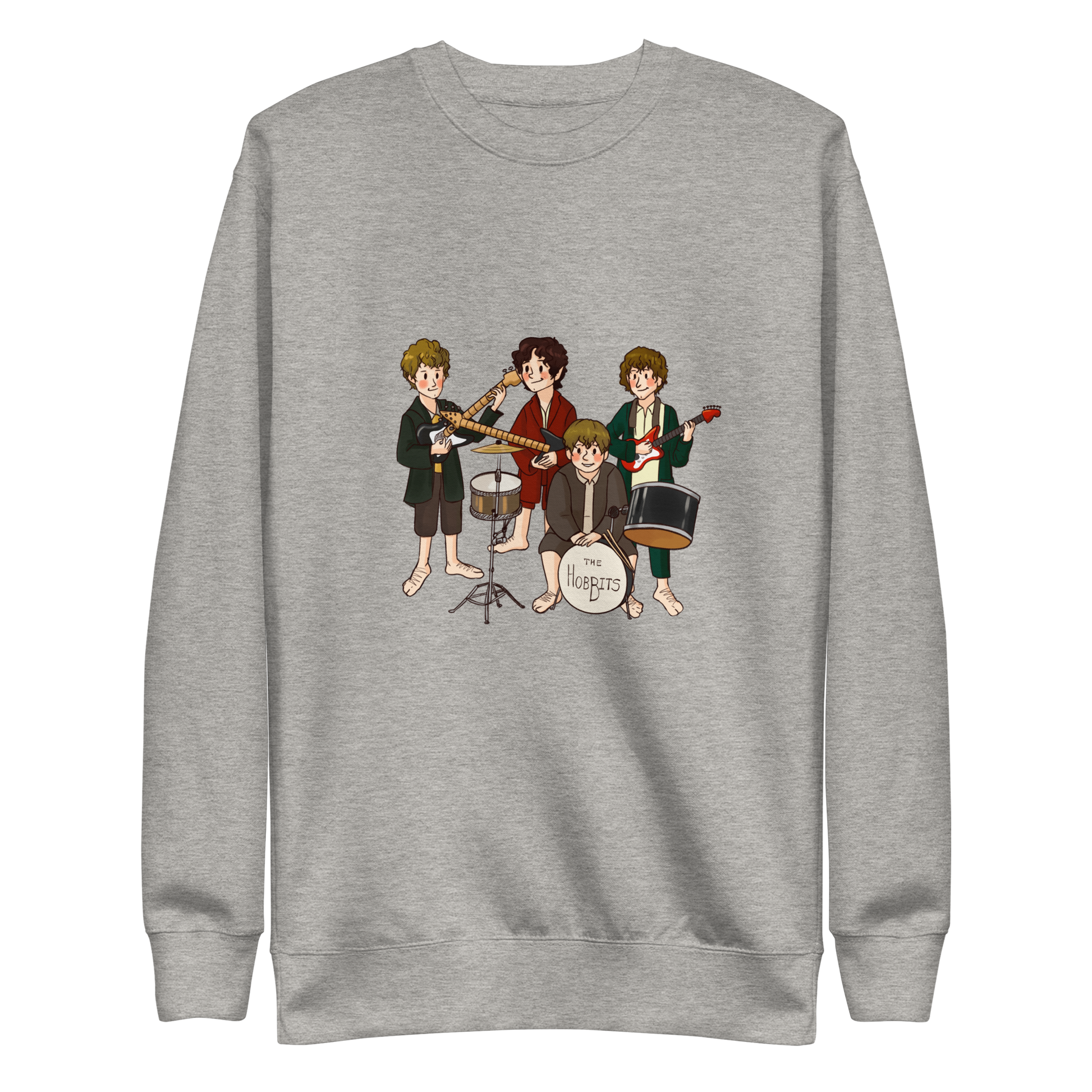 Wrap yourself in the magic of "The Hobbits" Band Sweatshirt, where The Lord of the Rings meets the iconic spirit of The Beatles. Frodo, Sam, Merry, and Pippin stand united, their instruments in hand, ready to enchant you with melodies of Middle-earth. The band name "The Hobbits" sets the stage for a journey into a harmonious blend of fantasy and music. With every cozy moment, let this sweatshirt serenade you with the best of both worlds.