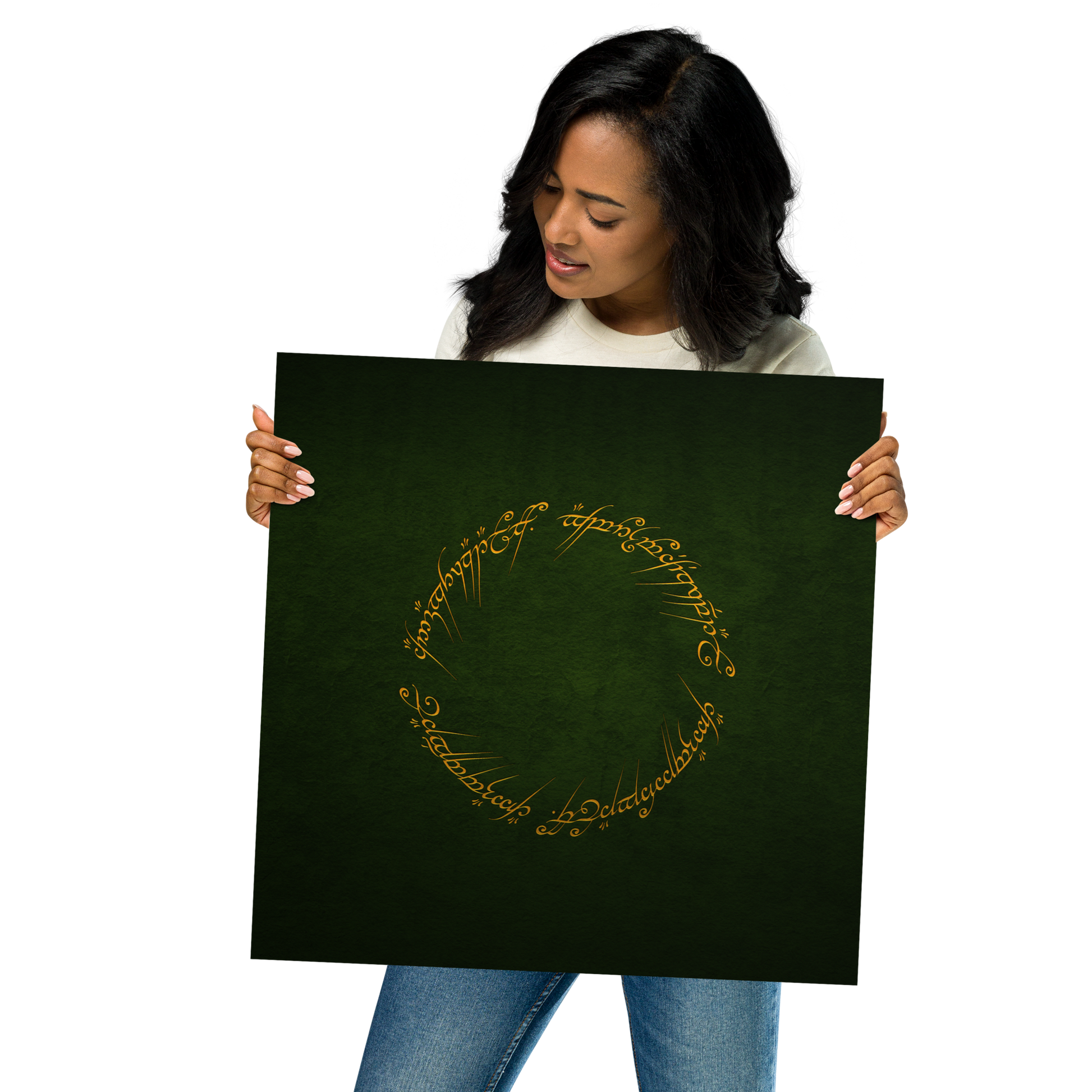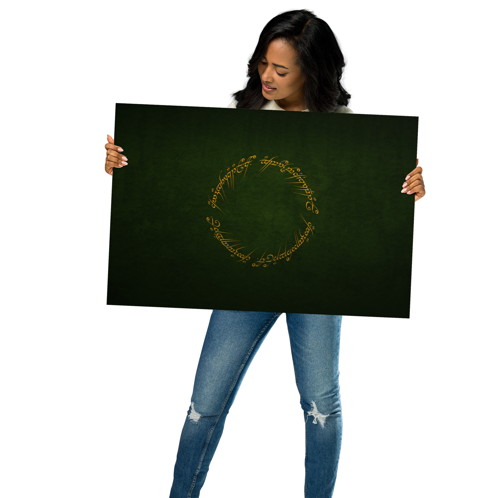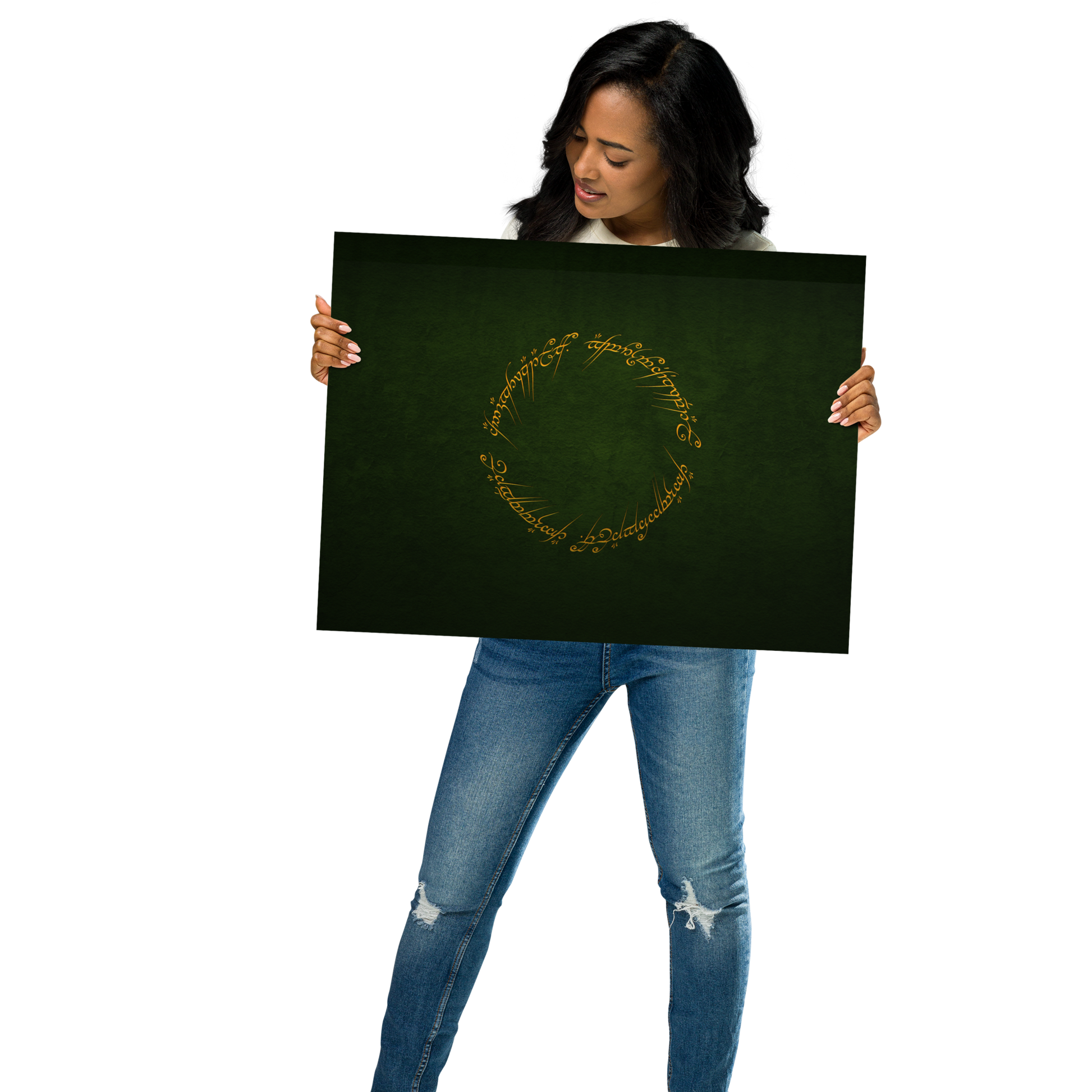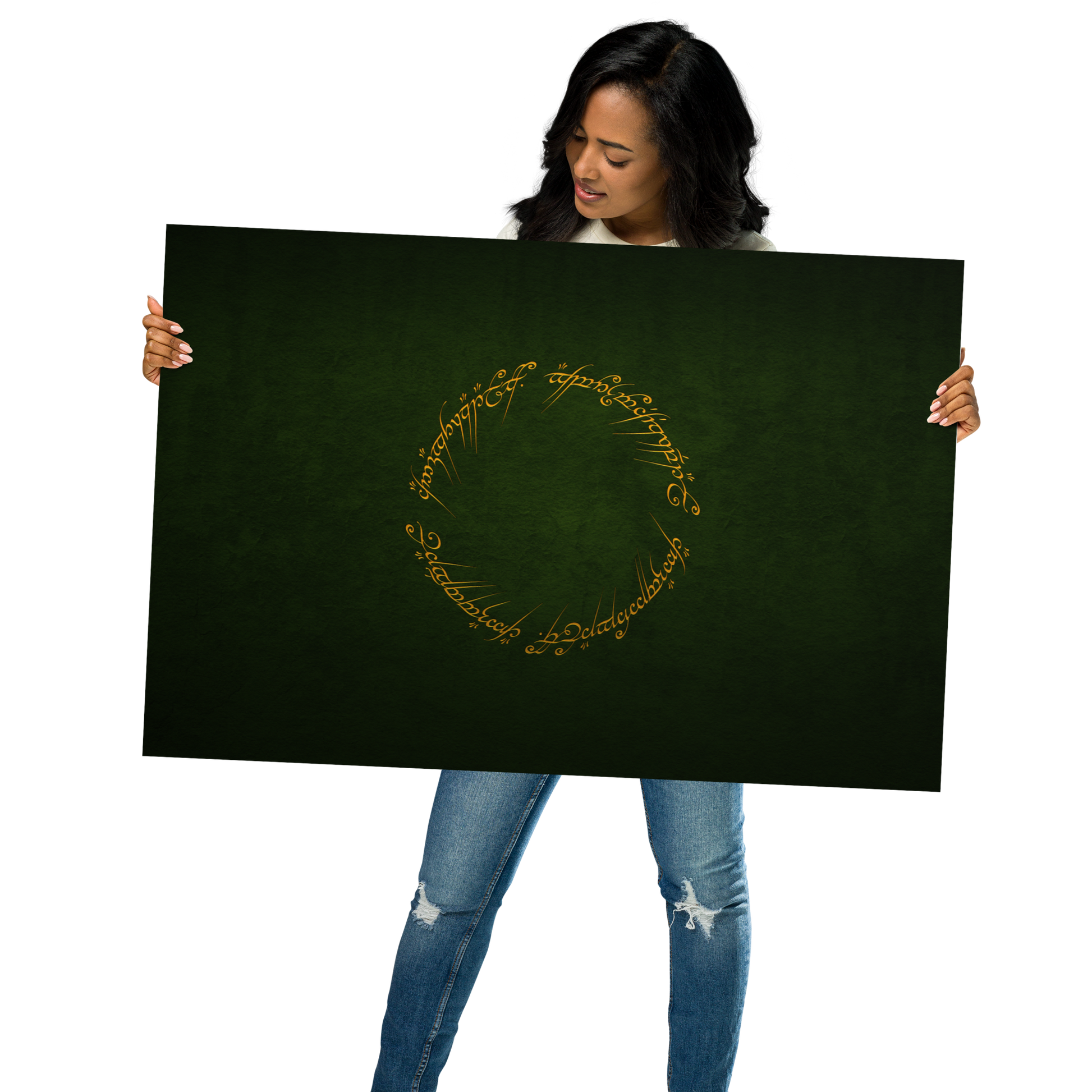 Enter the realm of Middle-earth with our One Ring Inscription Poster. This captivating poster features the iconic inscription from J.R.R. Tolkien's "The Lord of the Rings," an embodiment of power and enigma that has enthralled fans worldwide.