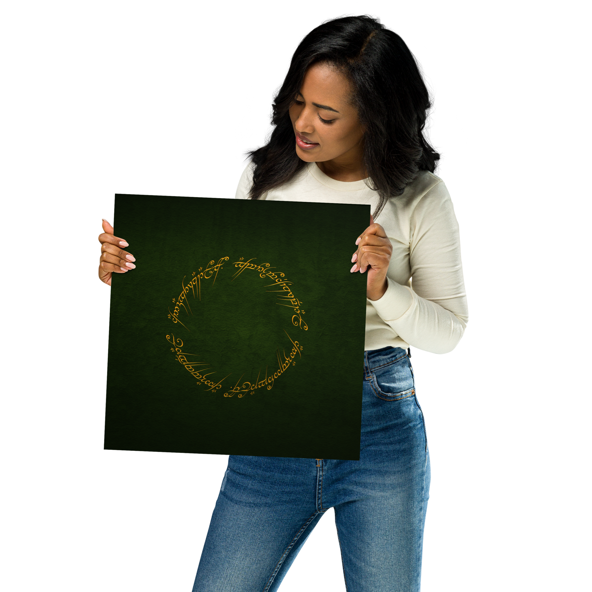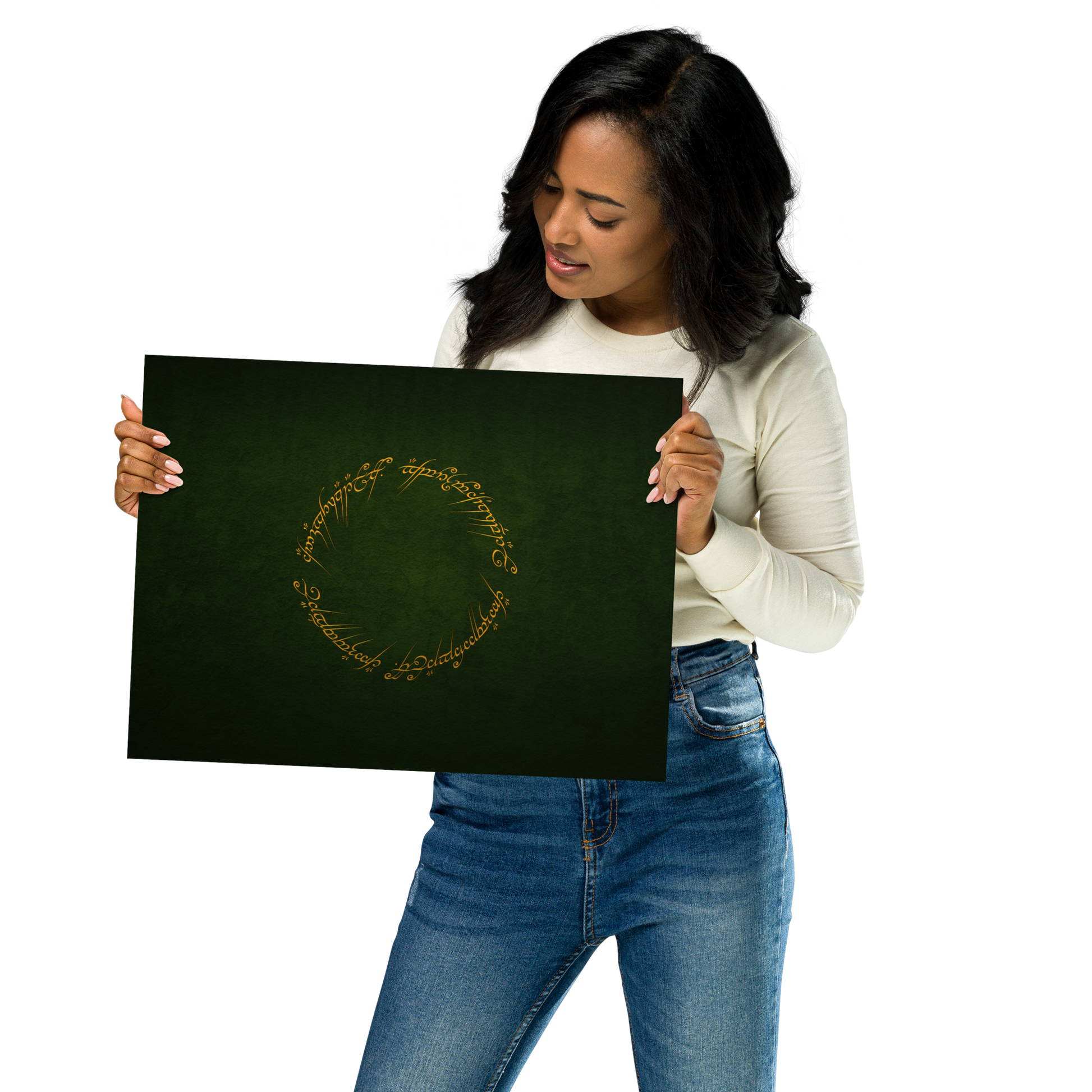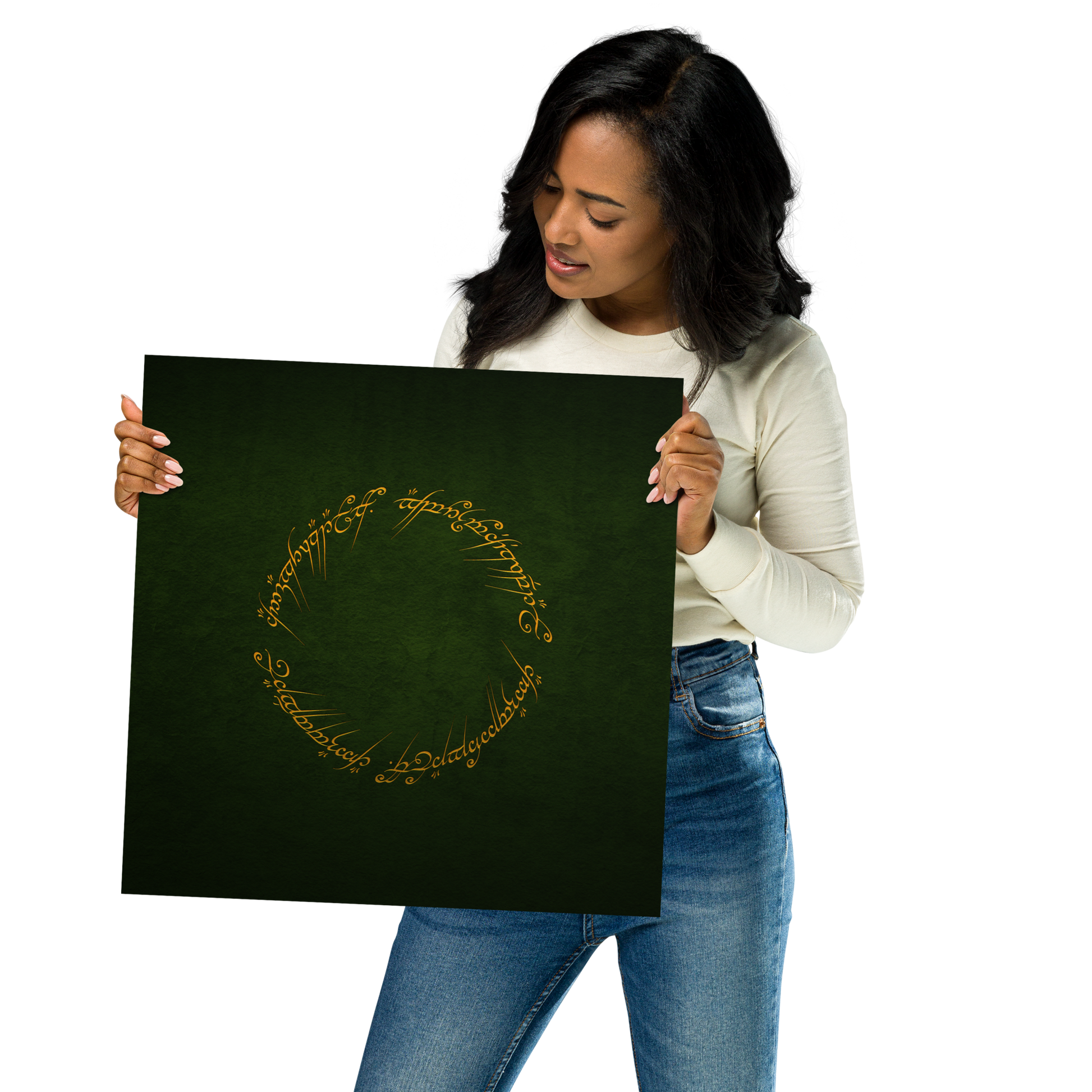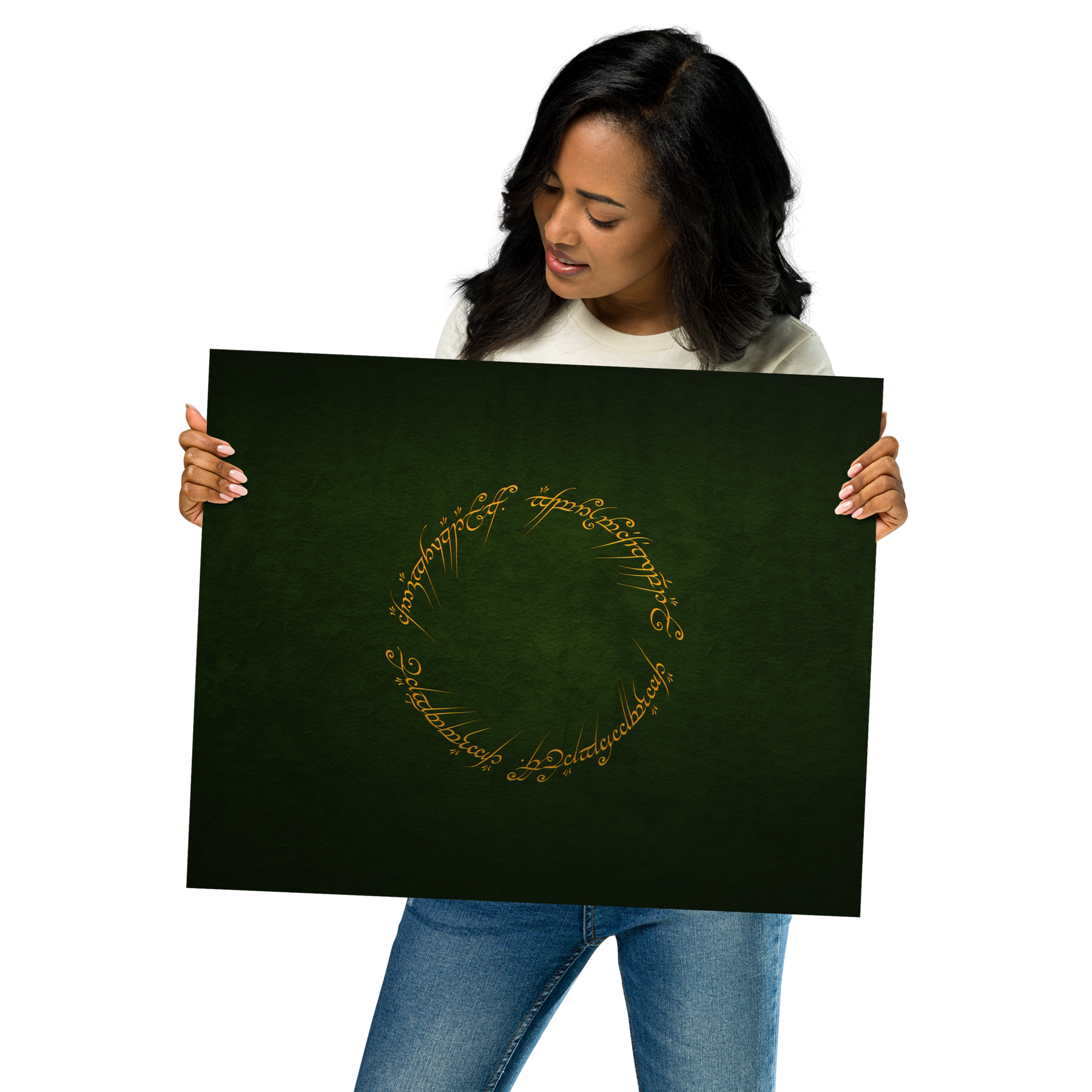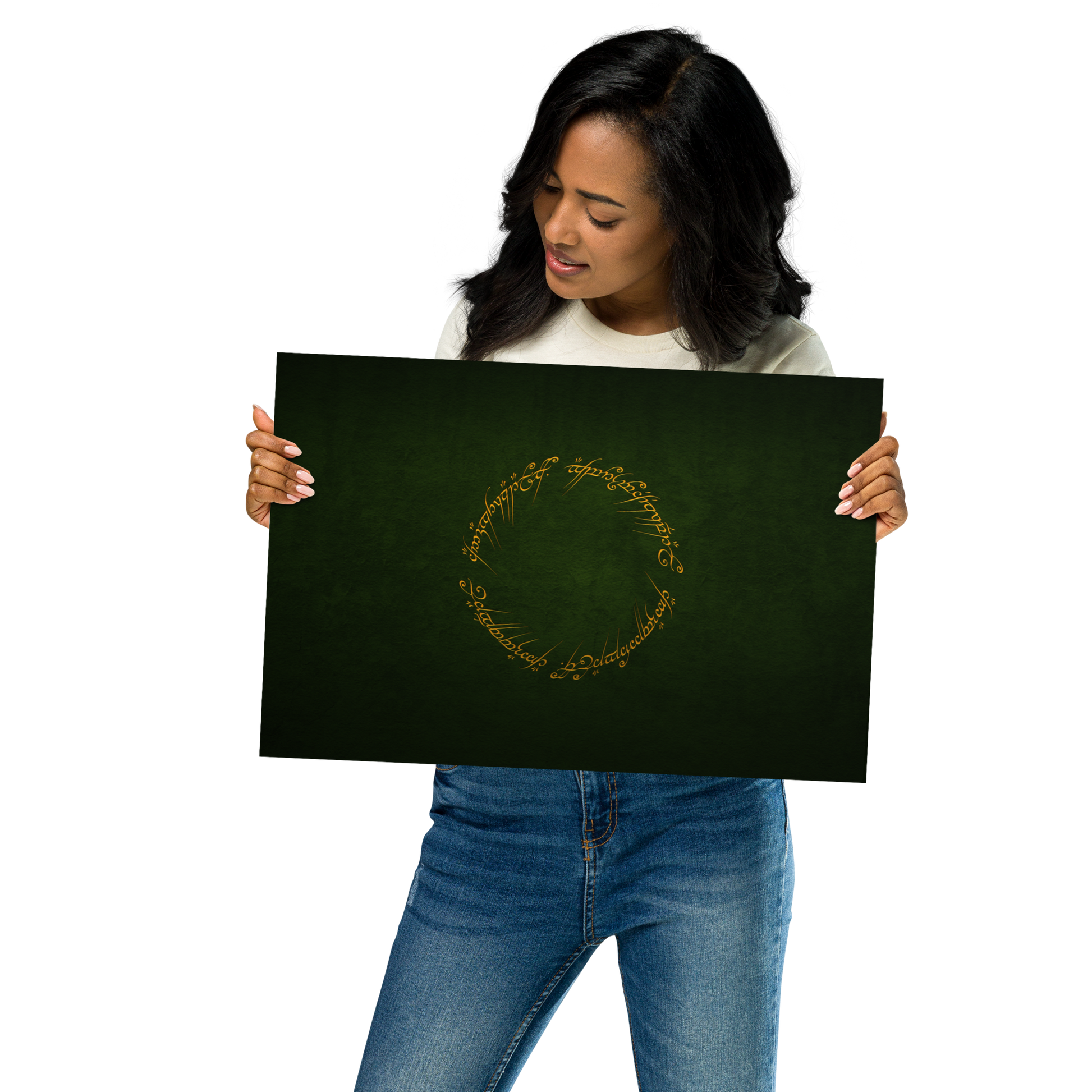 Enter the realm of Middle-earth with our One Ring Inscription Poster. This captivating poster features the iconic inscription from J.R.R. Tolkien's "The Lord of the Rings," an embodiment of power and enigma that has enthralled fans worldwide.