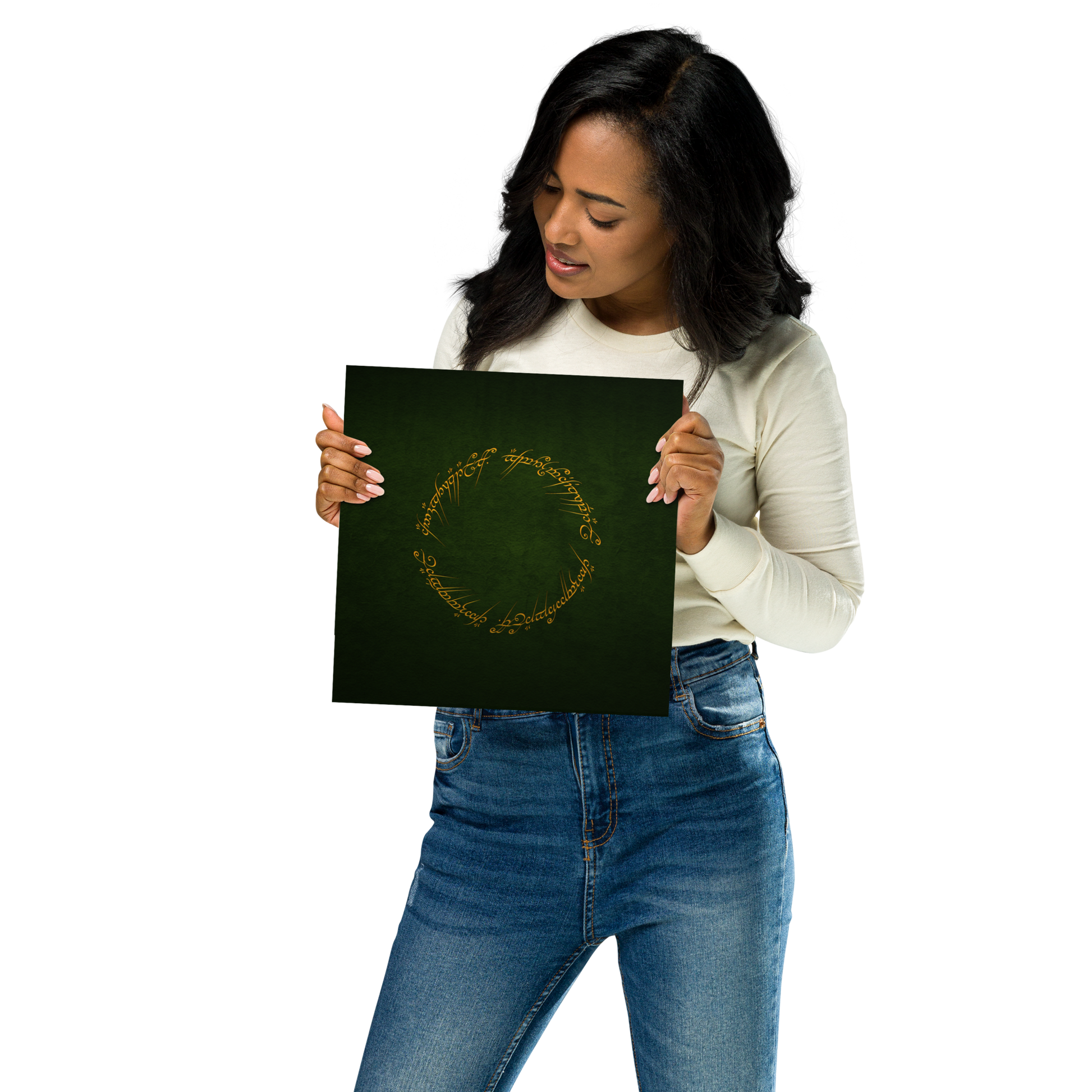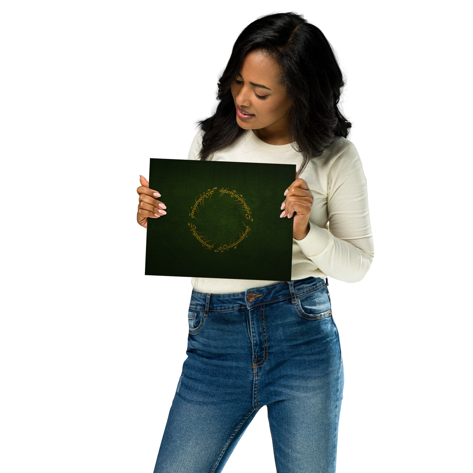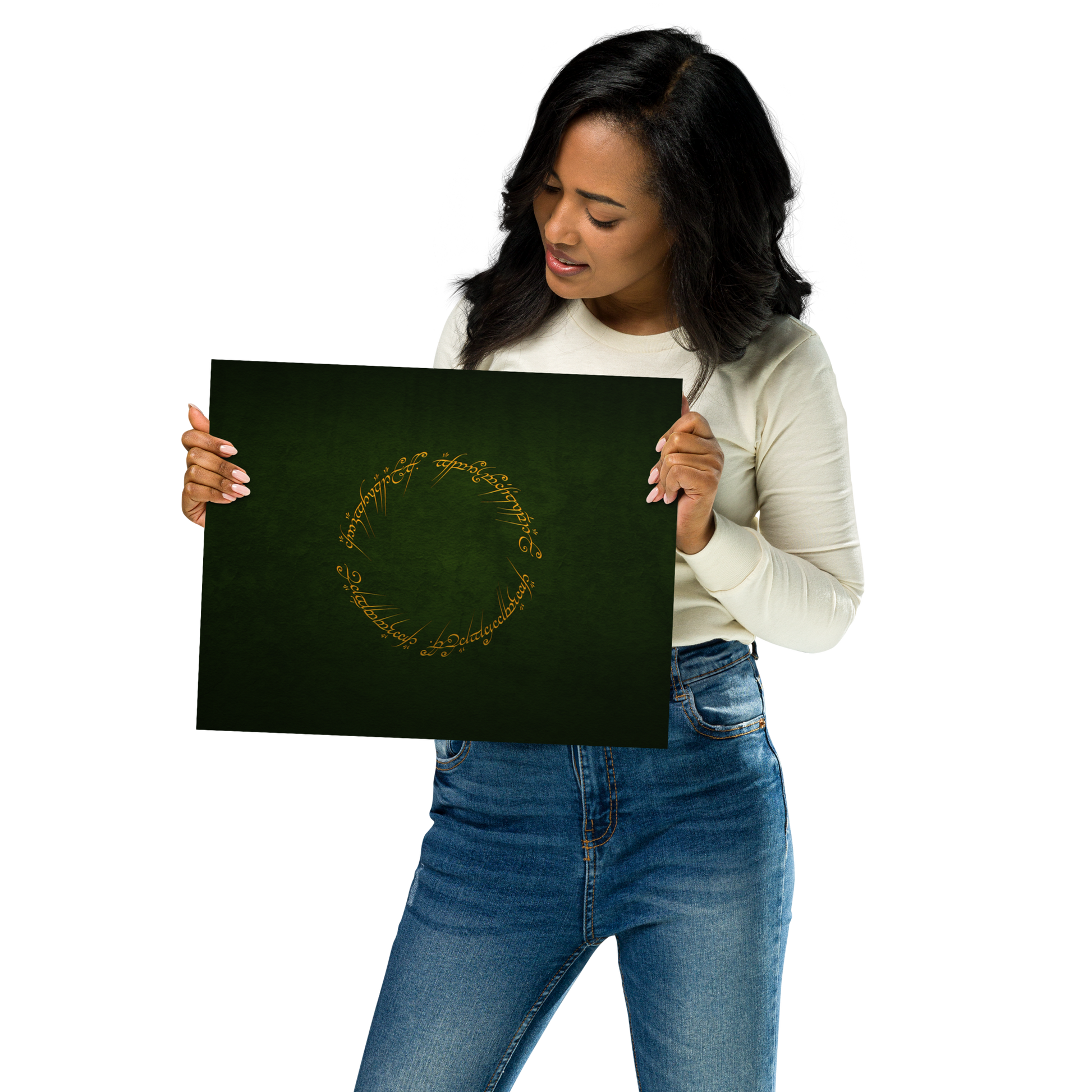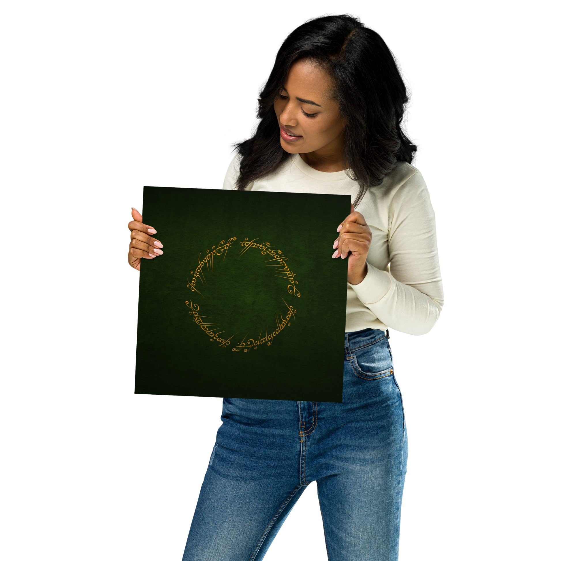Enter the realm of Middle-earth with our One Ring Inscription Poster. This captivating poster features the iconic inscription from J.R.R. Tolkien's "The Lord of the Rings," an embodiment of power and enigma that has enthralled fans worldwide.