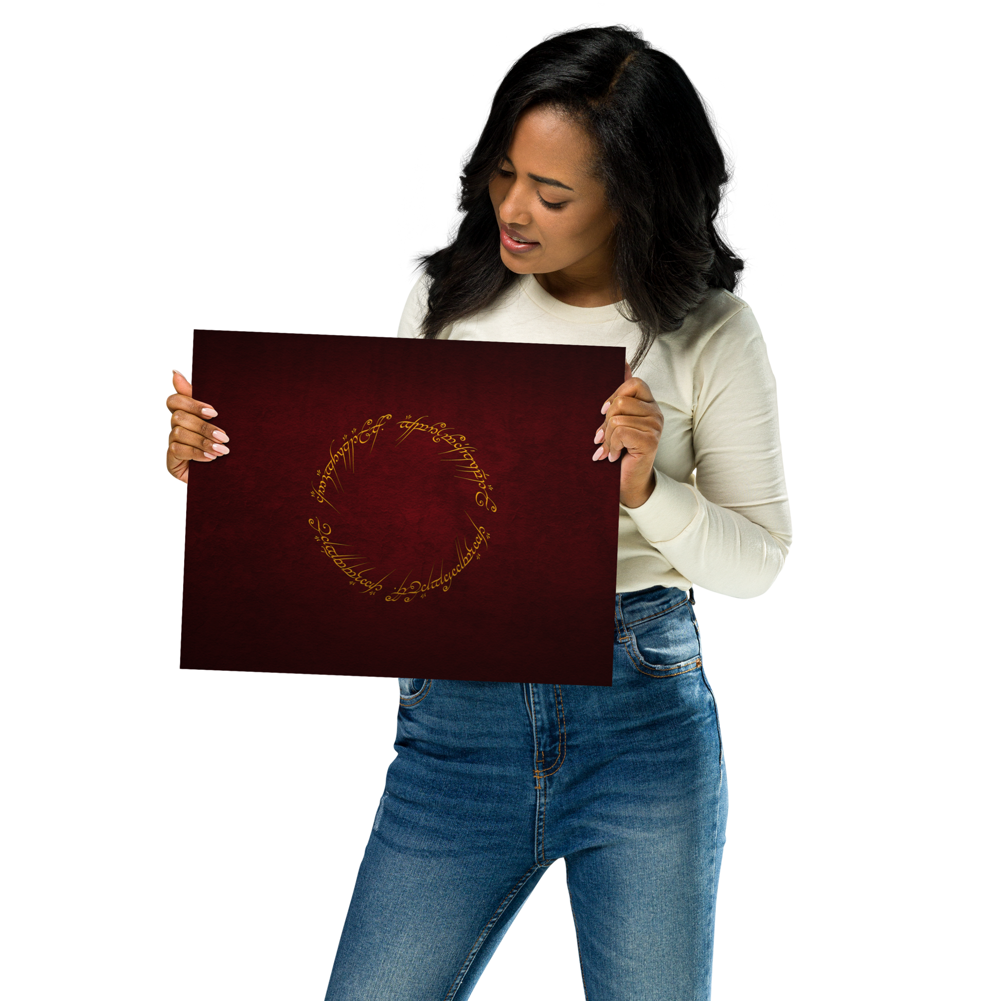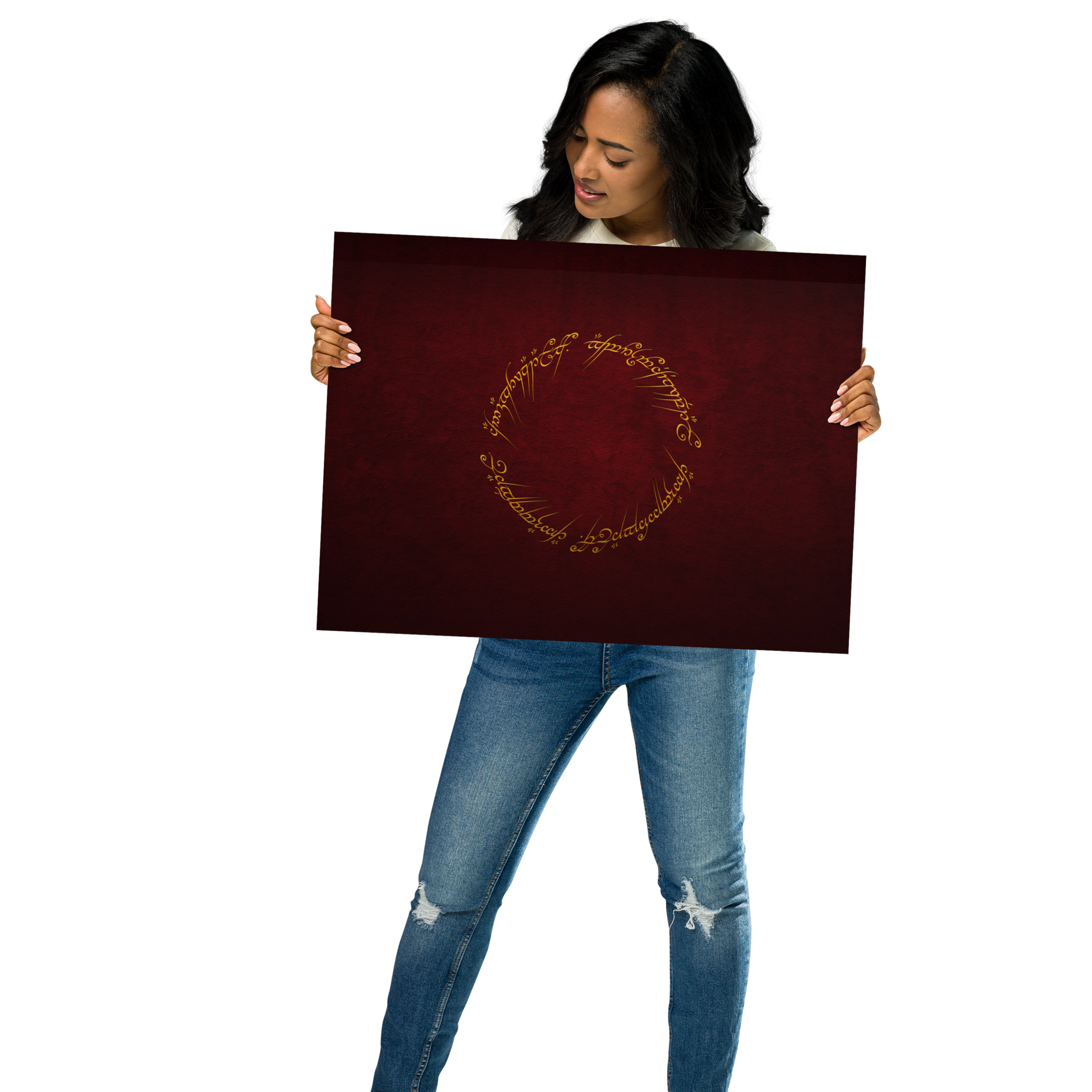 Enter the realm of Middle-earth with our One Ring Inscription Poster. This captivating poster features the iconic inscription from J.R.R. Tolkien's "The Lord of the Rings," an embodiment of power and enigma that has enthralled fans worldwide.