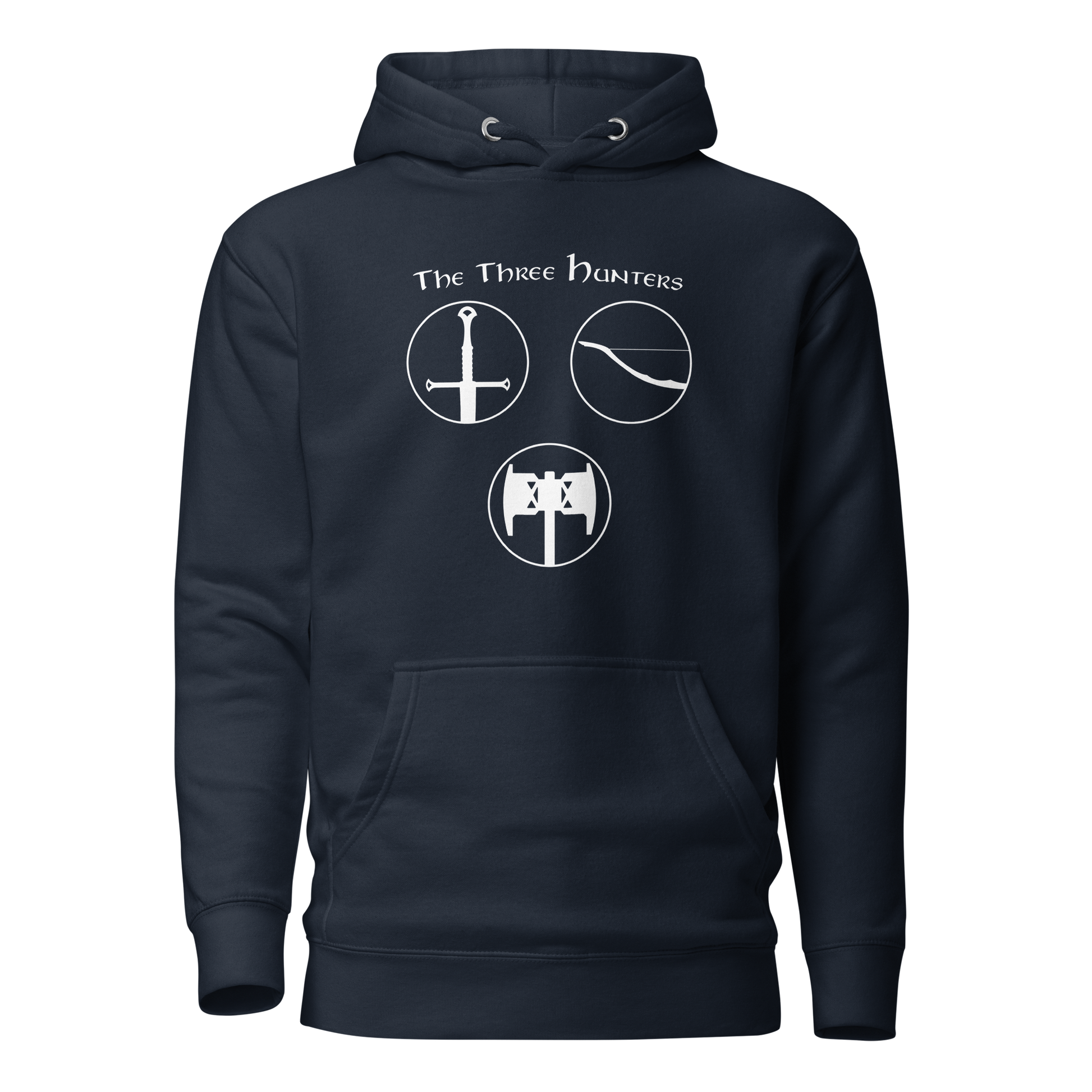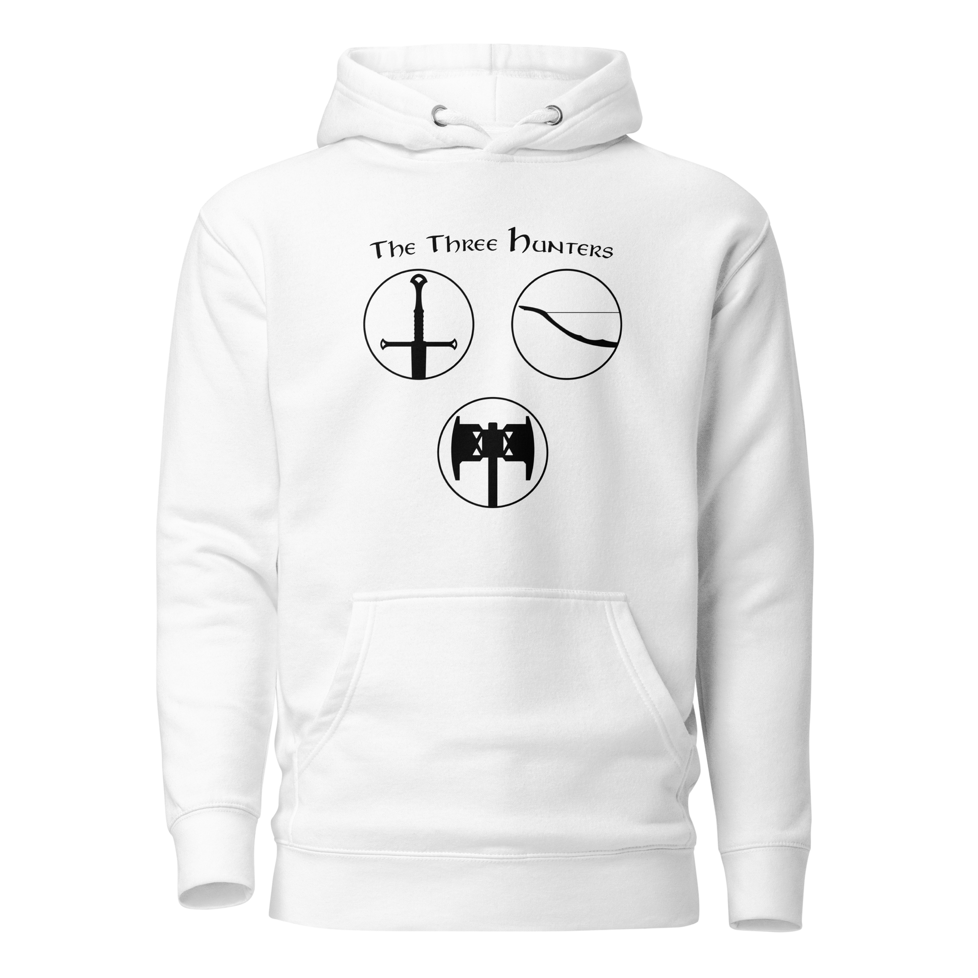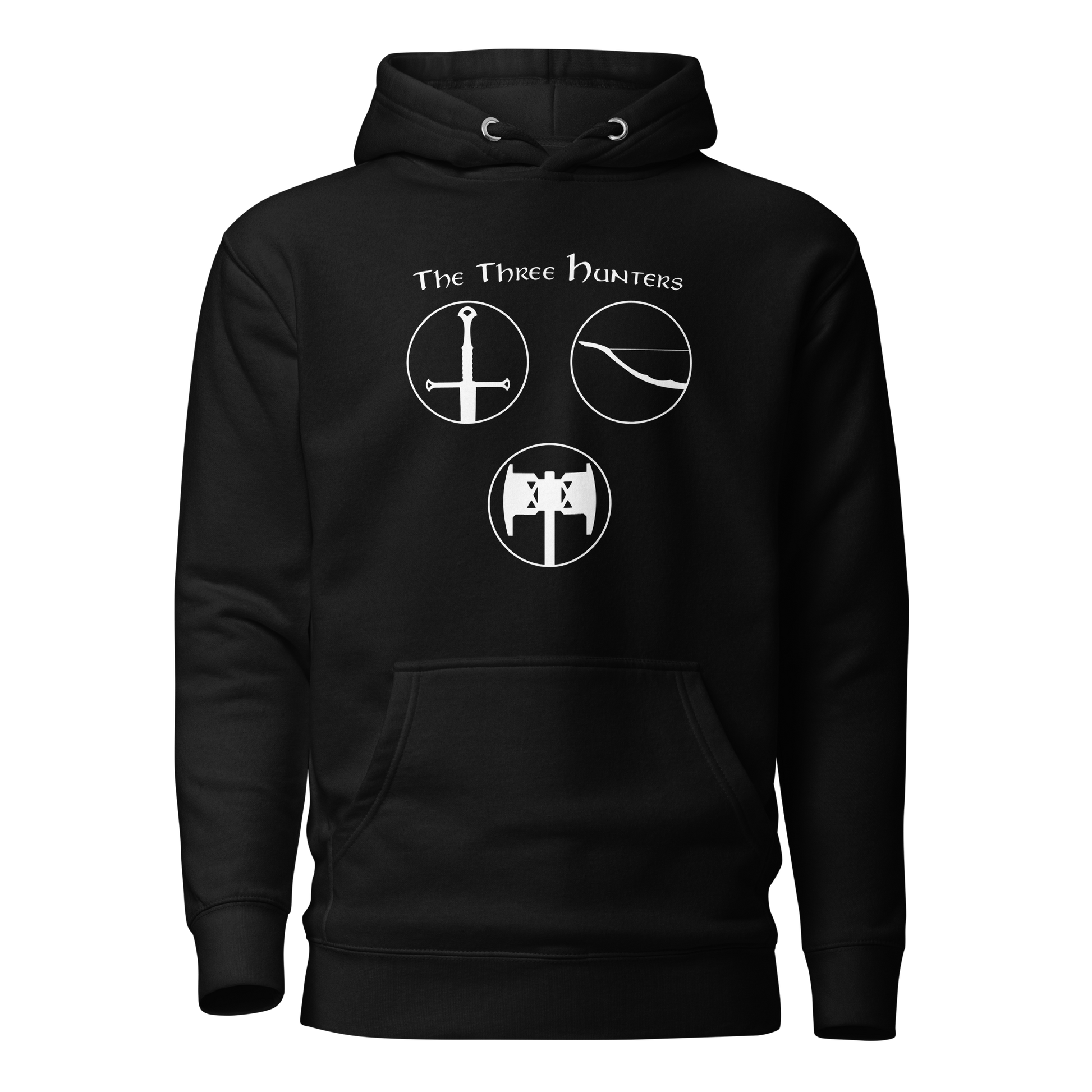 Gear up for an epic journey with our "The Three Hunters Hoodie." Inspired by the valiant trio of Aragorn, Legolas, and Gimli, this hoodie is more than apparel; it's a testament to the courage and camaraderie forged in the fires of Middle-earth. The striking design features each hunter, ready for battle, encapsulated in a circle of legend. Embark on your daily quests with legendary style and the spirit of true fellowship.