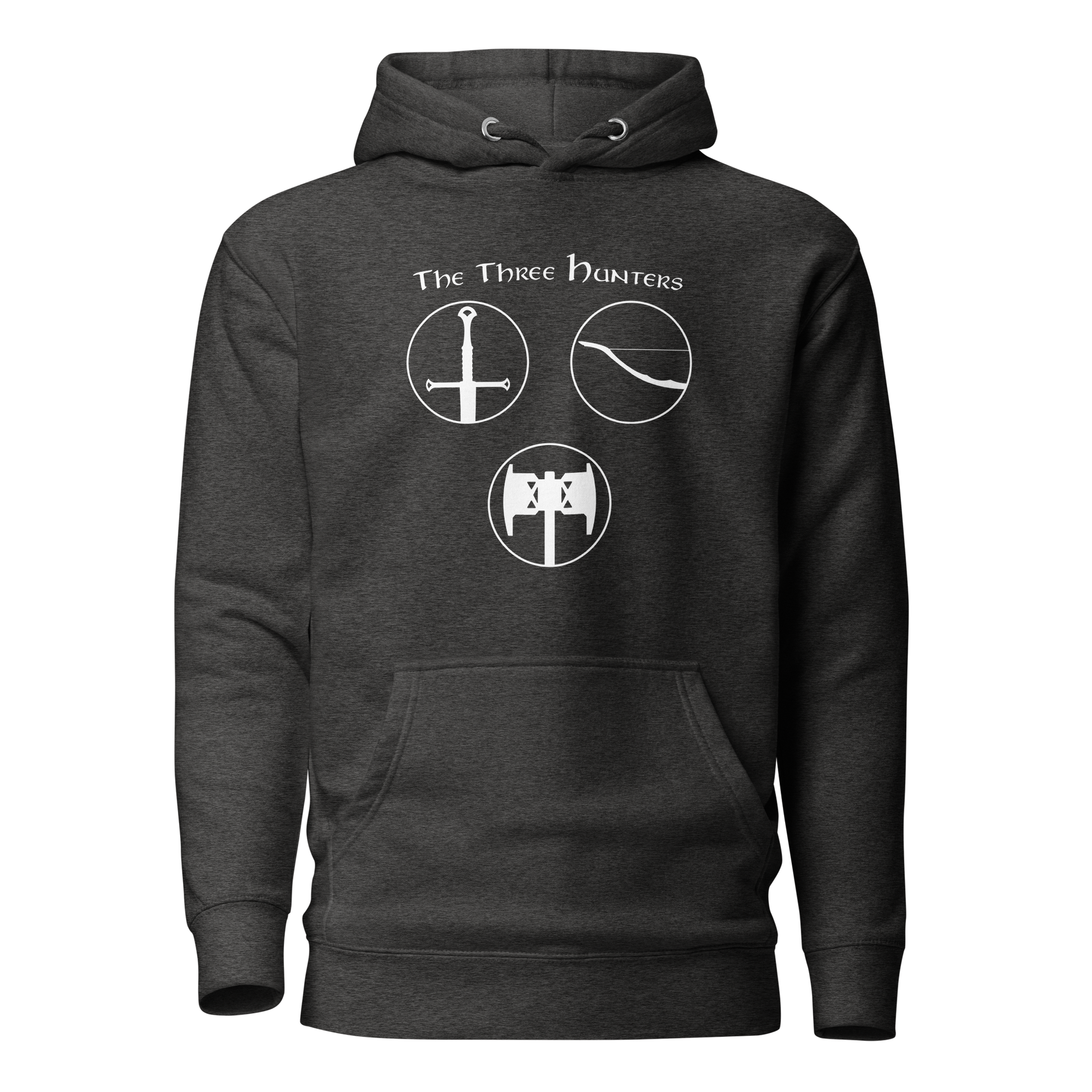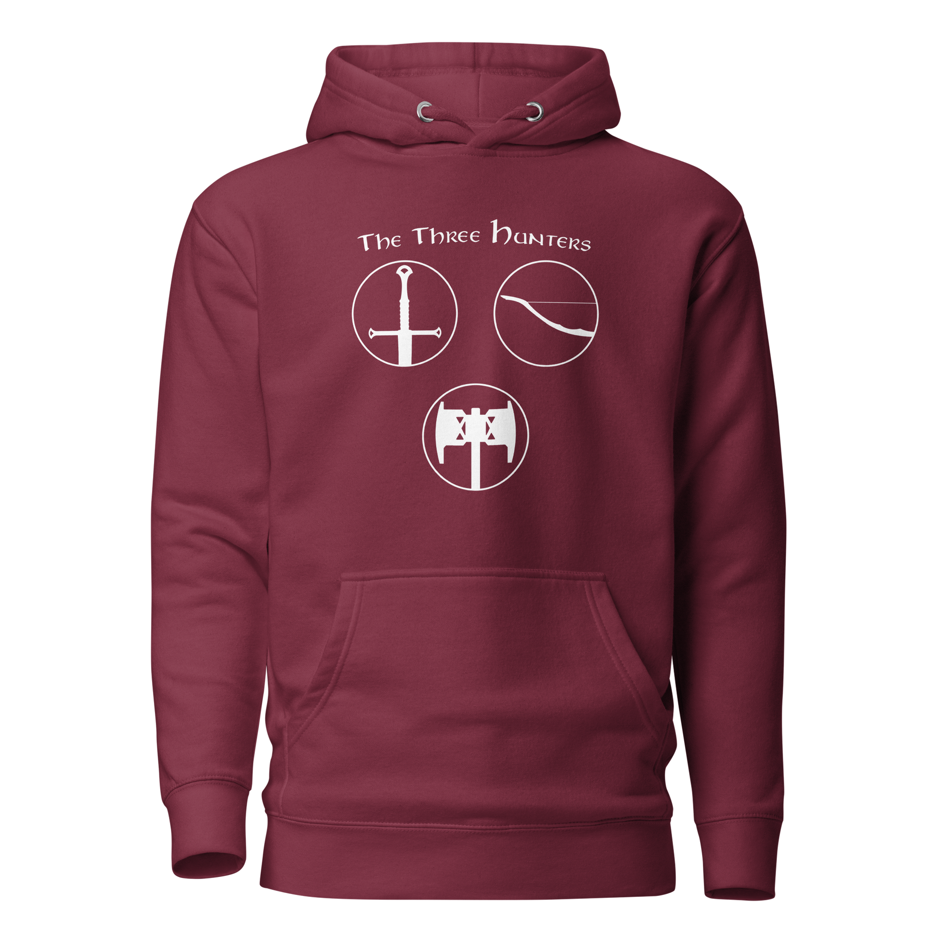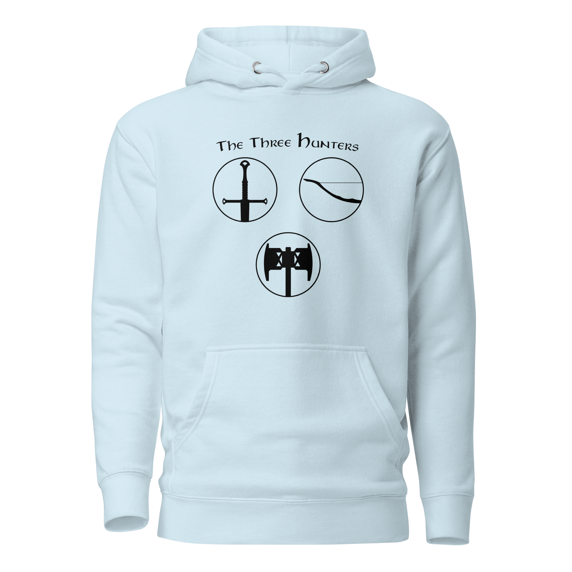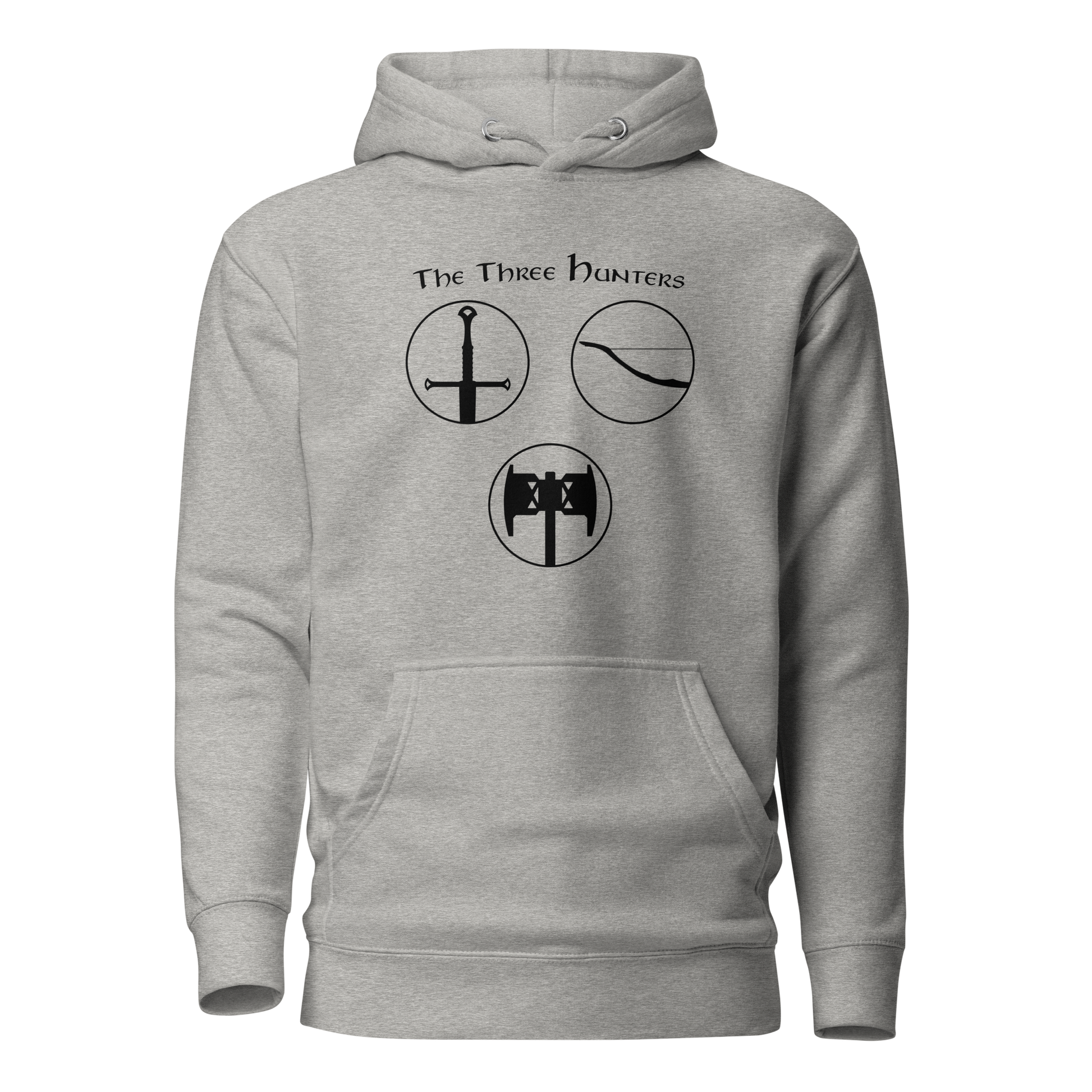 Gear up for an epic journey with our "The Three Hunters Hoodie." Inspired by the valiant trio of Aragorn, Legolas, and Gimli, this hoodie is more than apparel; it's a testament to the courage and camaraderie forged in the fires of Middle-earth. The striking design features each hunter, ready for battle, encapsulated in a circle of legend. Embark on your daily quests with legendary style and the spirit of true fellowship.